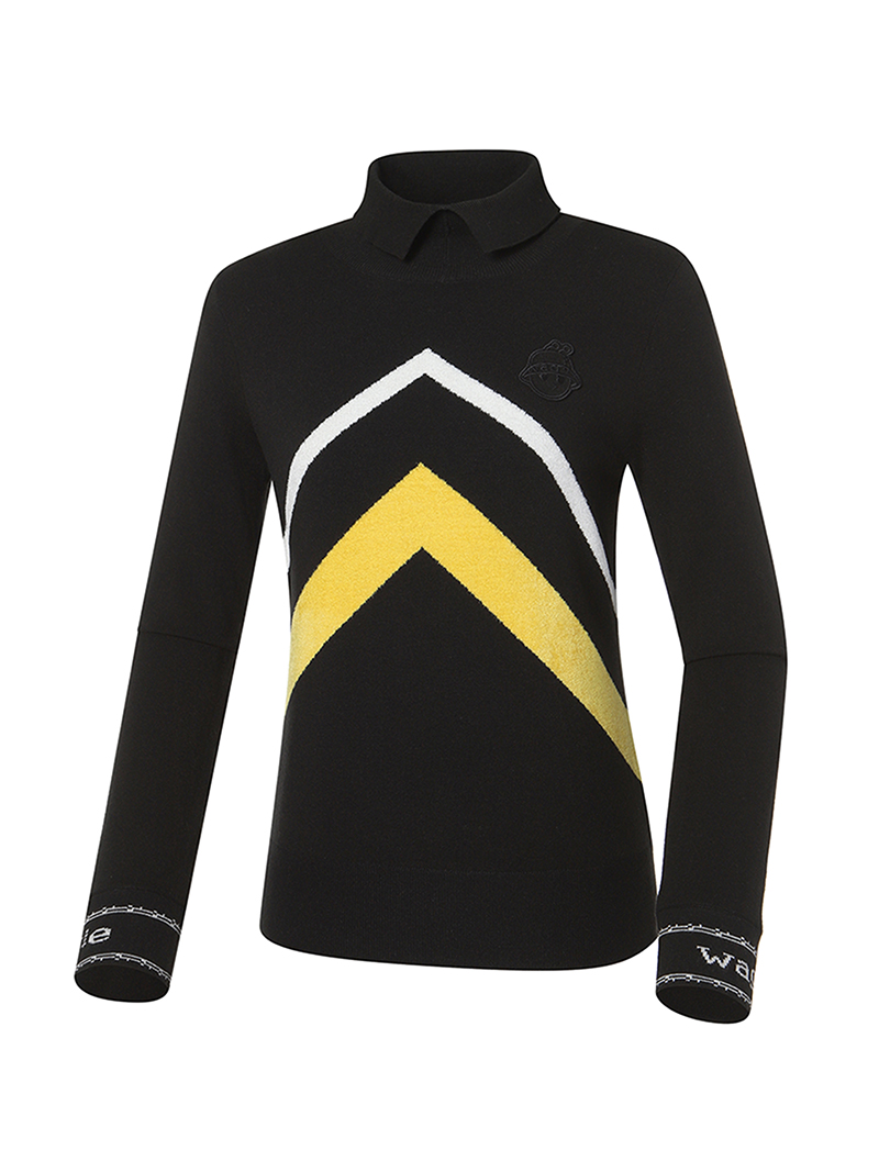 여성 WG 쉐브론 하이넥 스웨터 (Black)