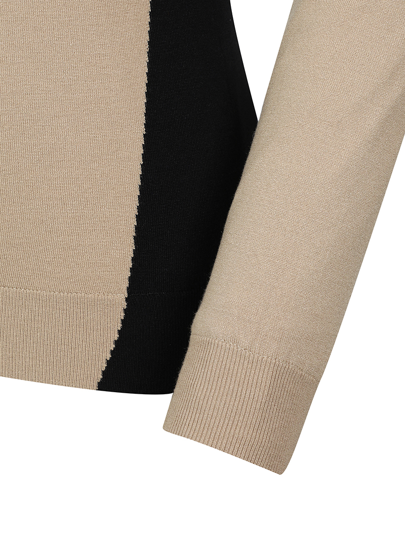 [슬림한 실루엣이 연출 가능한 허리 라인 배색이 포인트가 되는 하이넥 풀오버 스웨터]