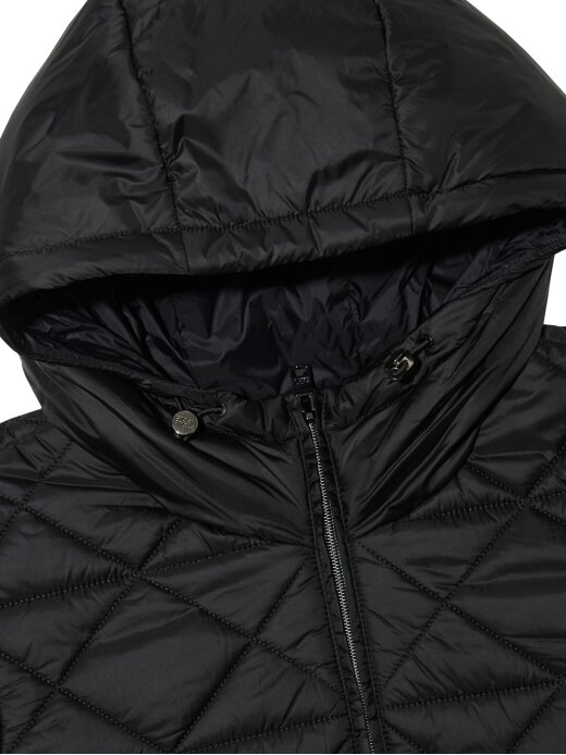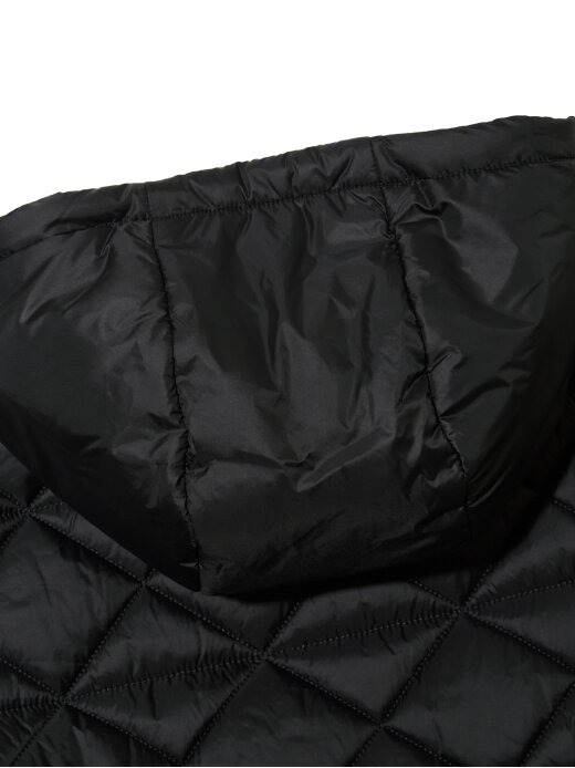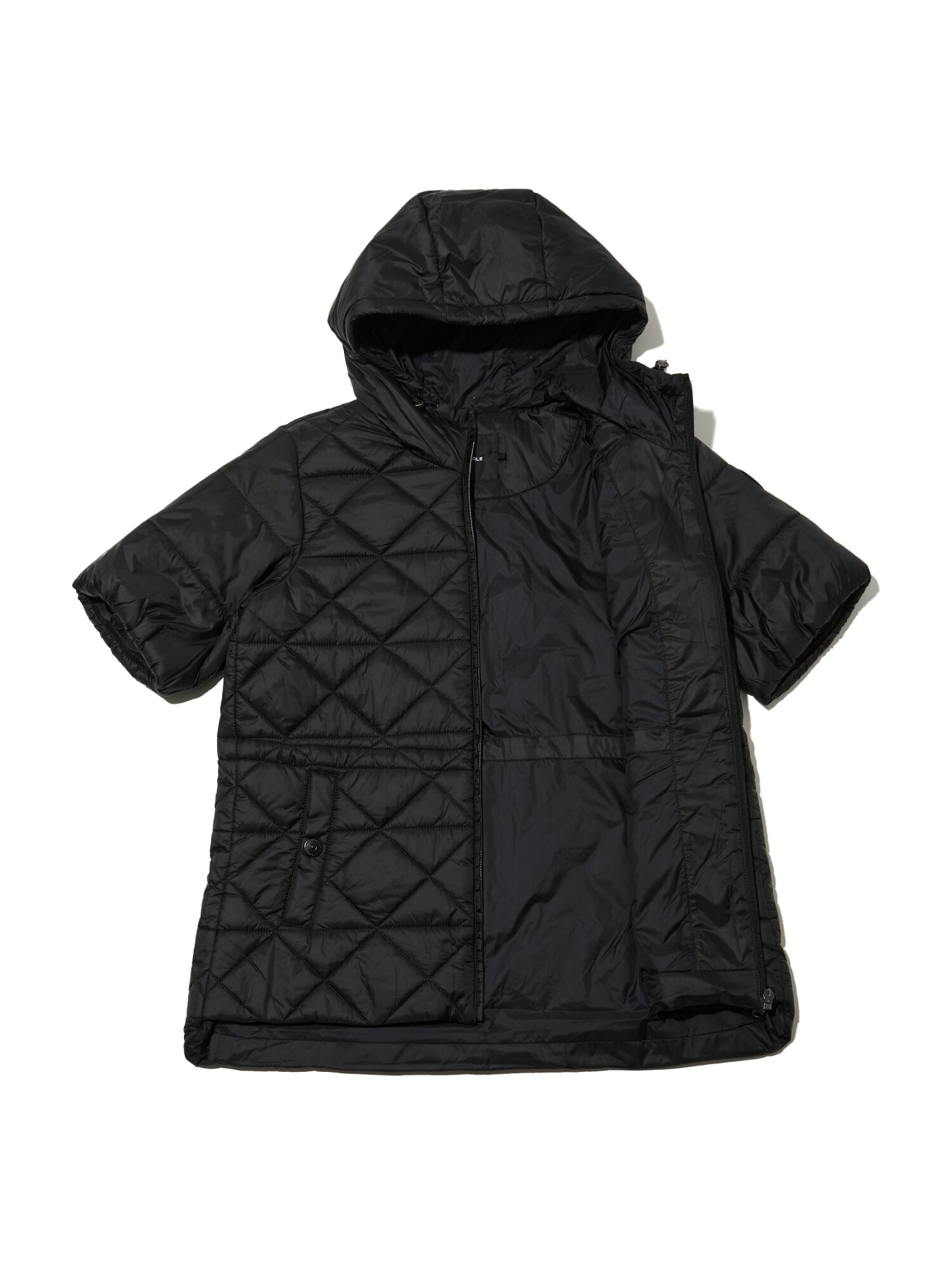 - 여성스럽고 온오프웨어로 어디서든 착용가능한 변형 퀼팅 후디 7부소매 패딩자켓