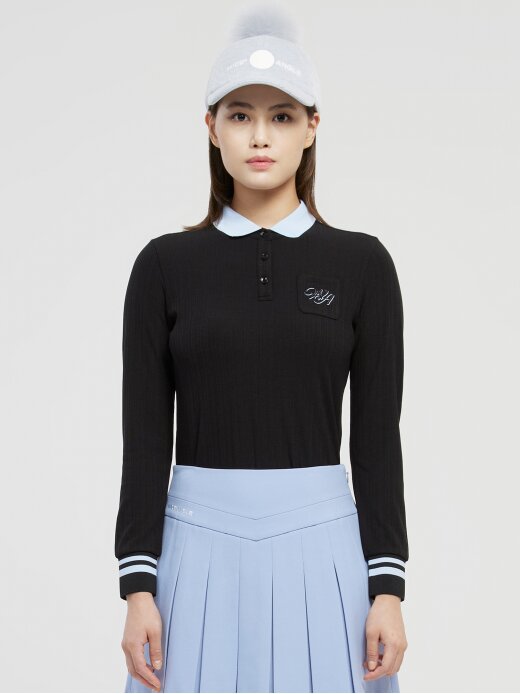 여성 CO 골조직 폴로 티셔츠 L (Black)