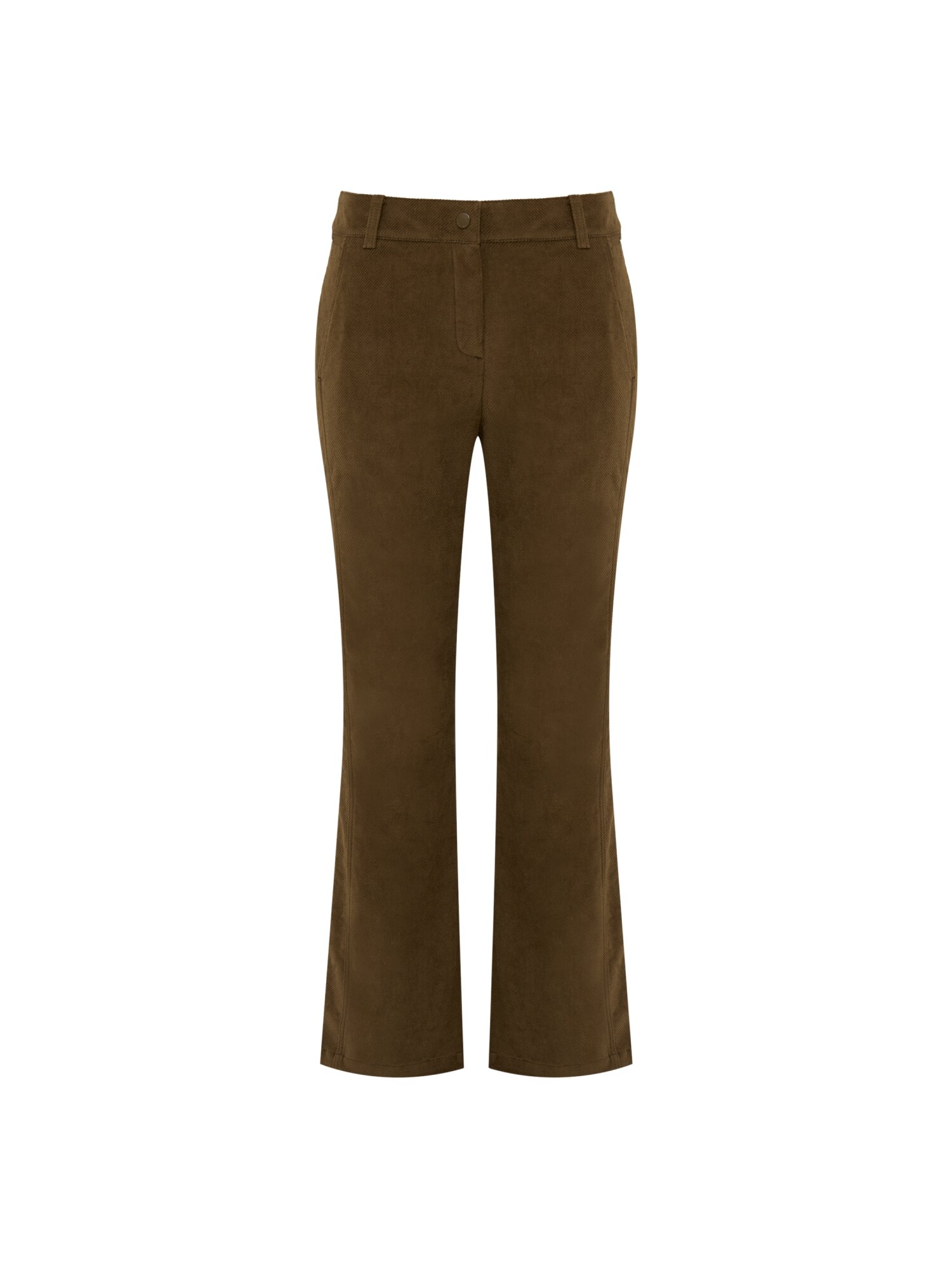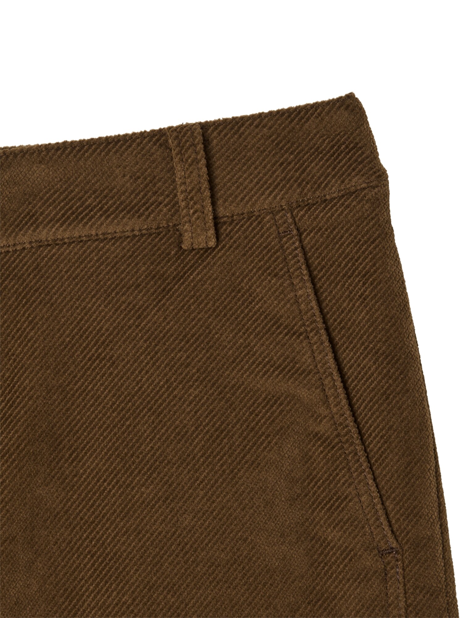 - 일반적인 골조직 코듀로이가 아닌 리브리스 트윌조직의 새로운 외관 소재를 사용하여 고급스러움을 높였으며 슬림해보이보록 앞 라인 절개 디테일을 더한 스타일