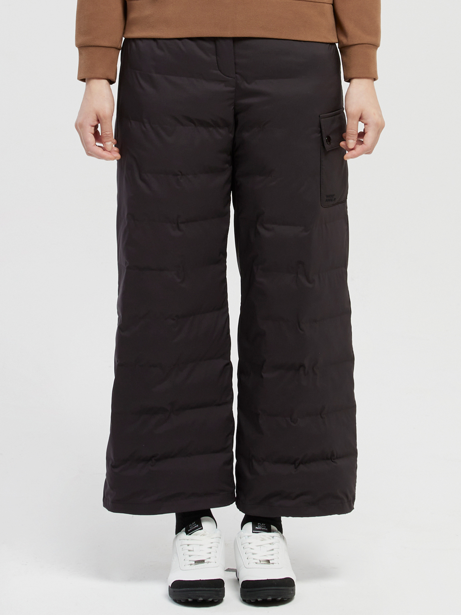 - 스트레치, 발수 기능을 겸비한 다운 삼출 최소화하기 위한 튜브다운 소재의 와이드 팬츠