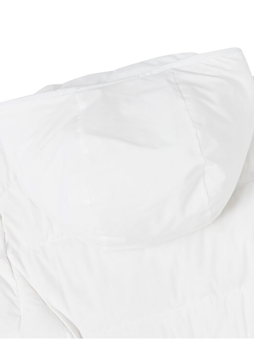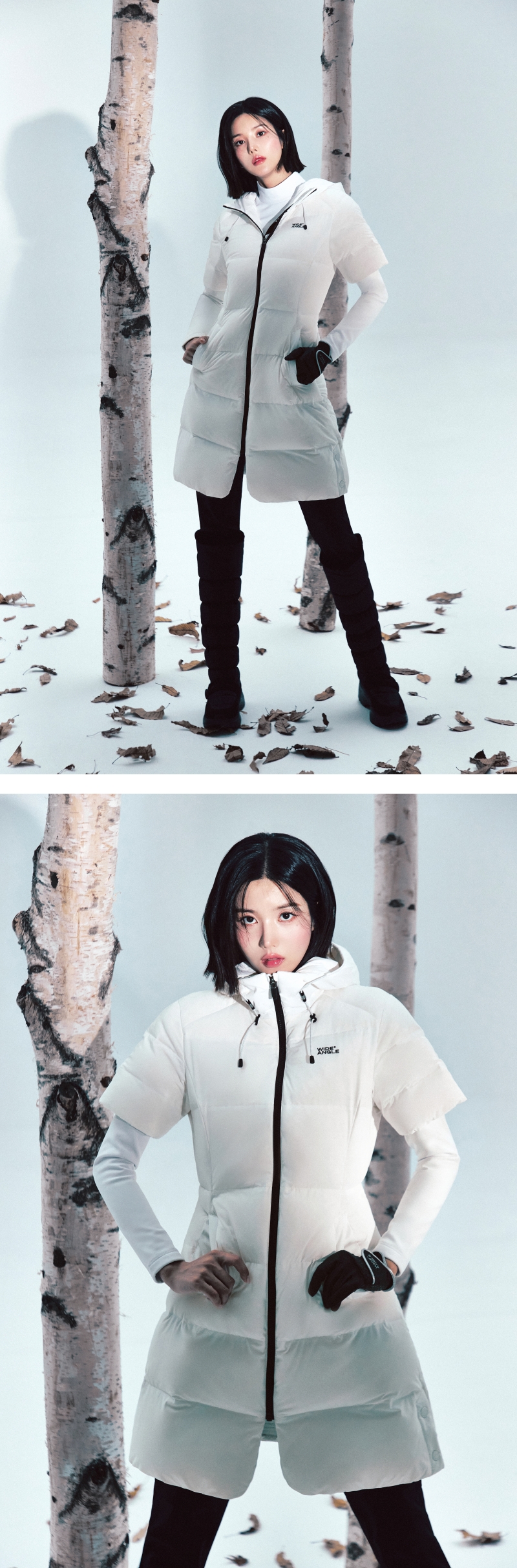 - 동절기 필드에서 보다 높은 보온성을 높이기 위해 기존 짧은 기장의 반팔 다운에서 긴기장 후드형으로 기획된 제품