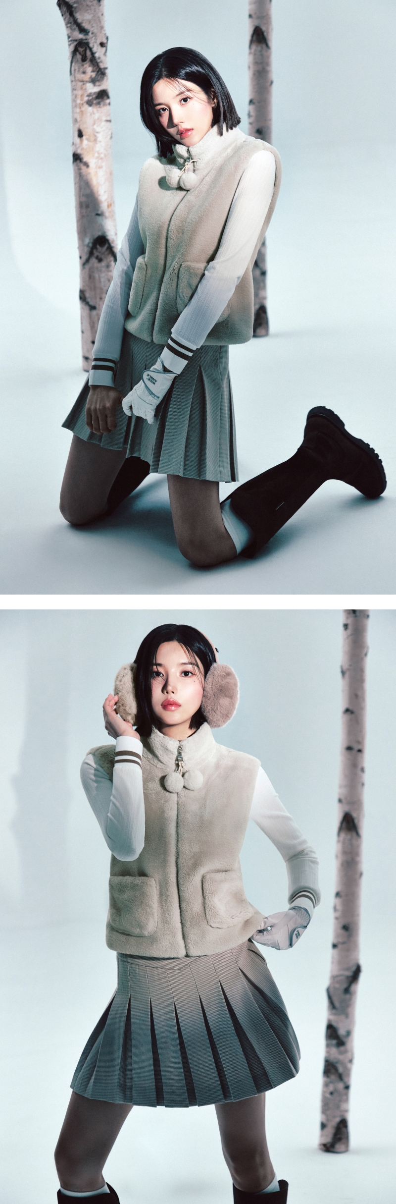 - 풍성하고 부드러운 터치감으로 포근한 느낌을 살린 페이크 퍼 베스트