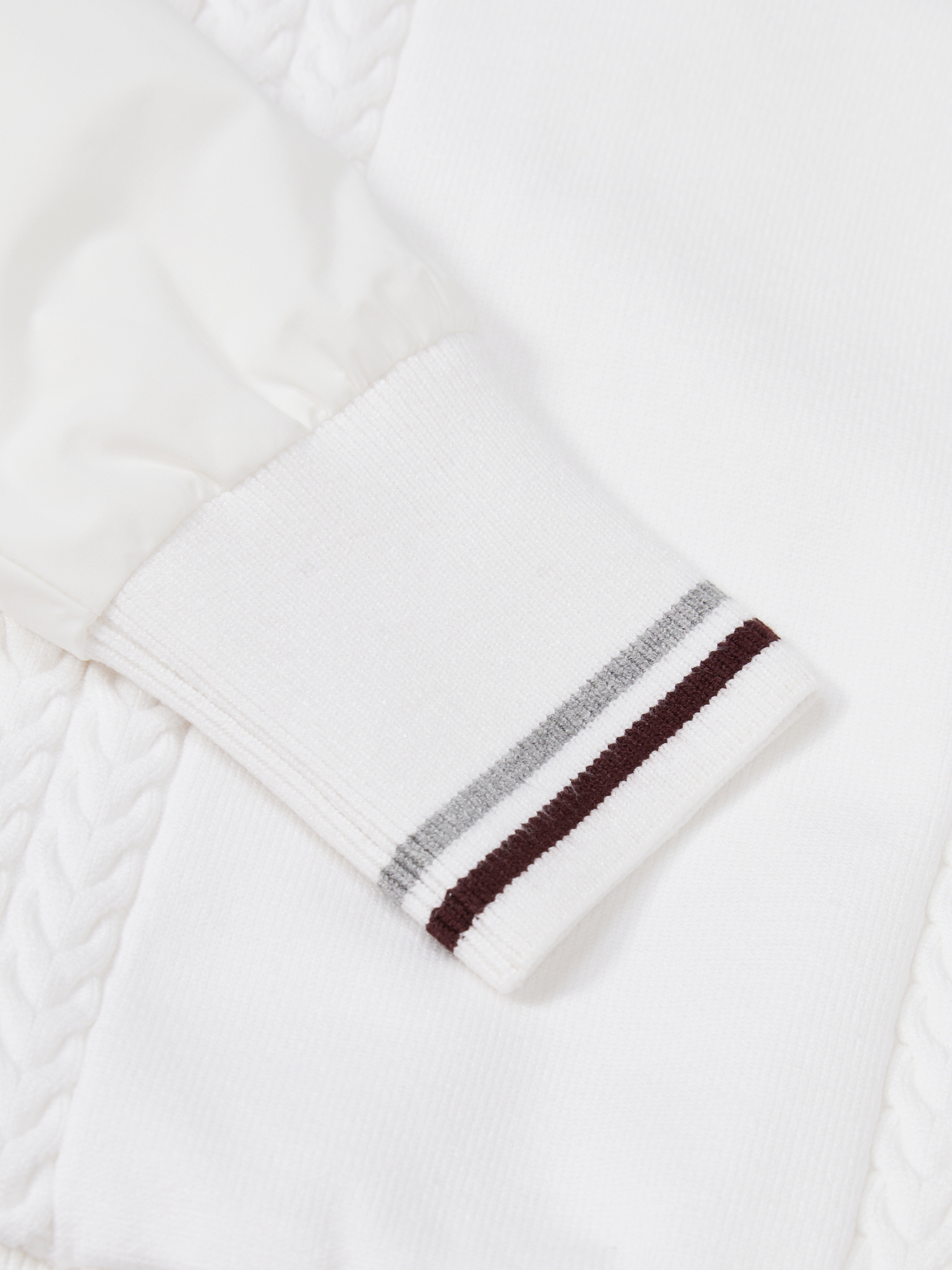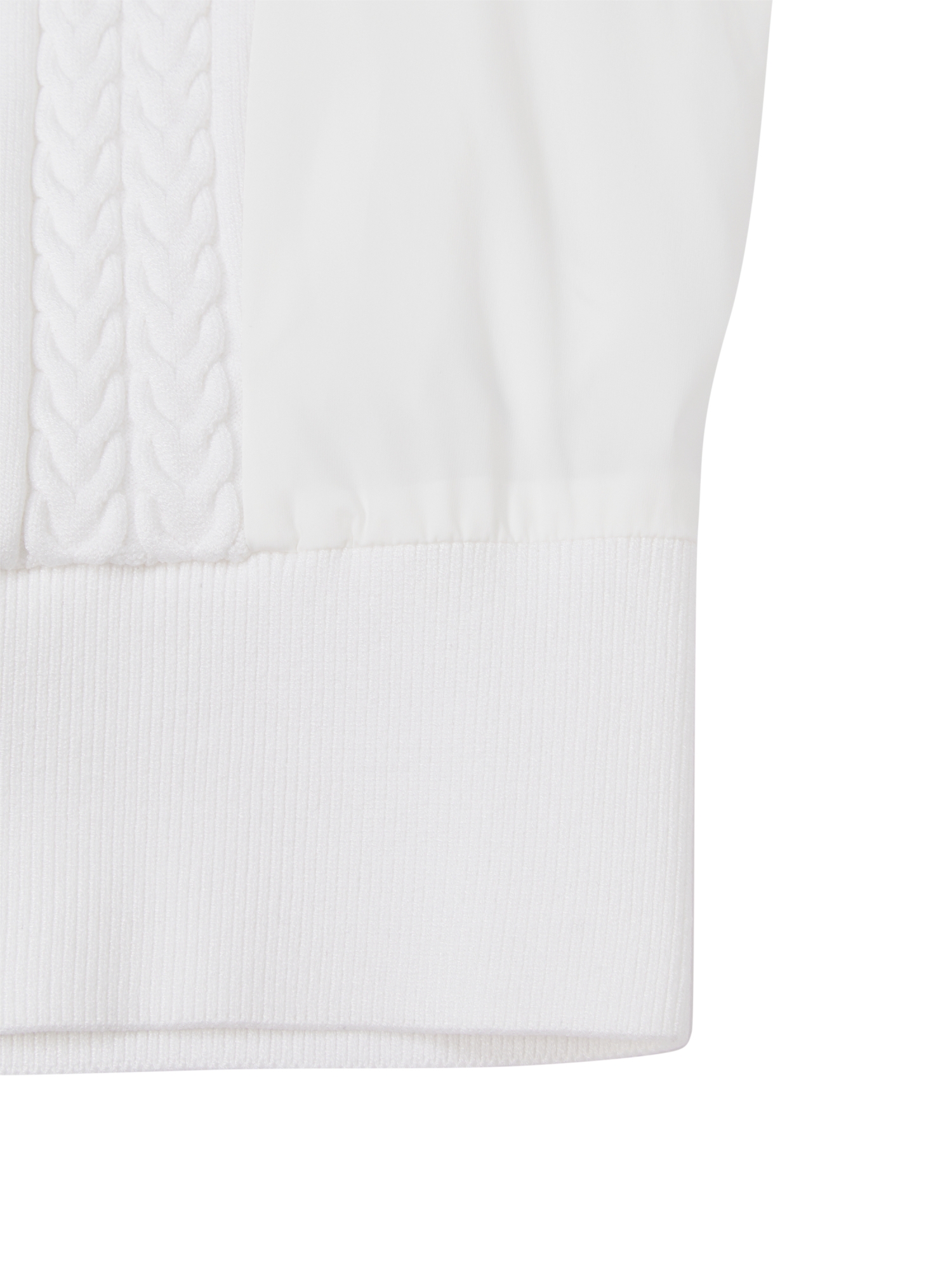 - 케이블 조직과 소매 우븐 원단믹스로 캐주얼한 무드 연출