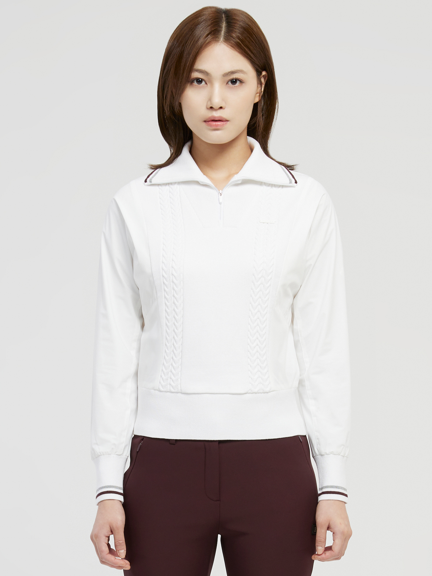 - 새로운 실루엣의 하이브리드형 반집업 스웨터