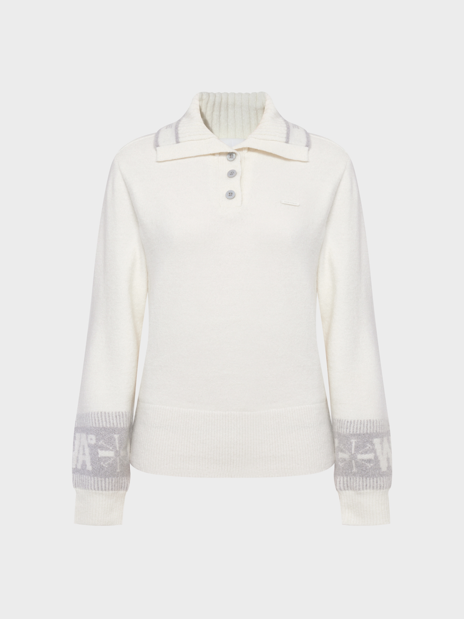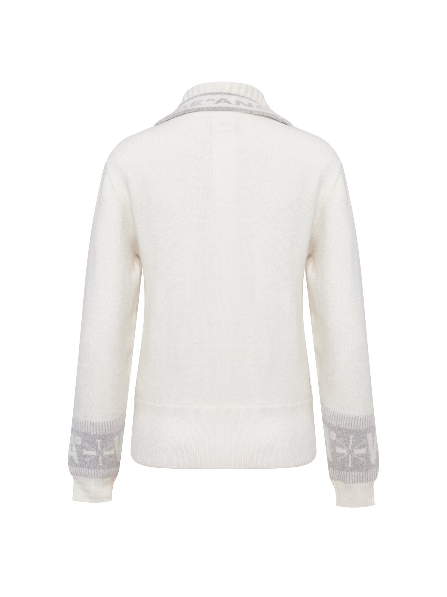 - 노르딕 패턴의 소매와 와이드칼라넥이 포인트인 겨울 방풍 스웨터