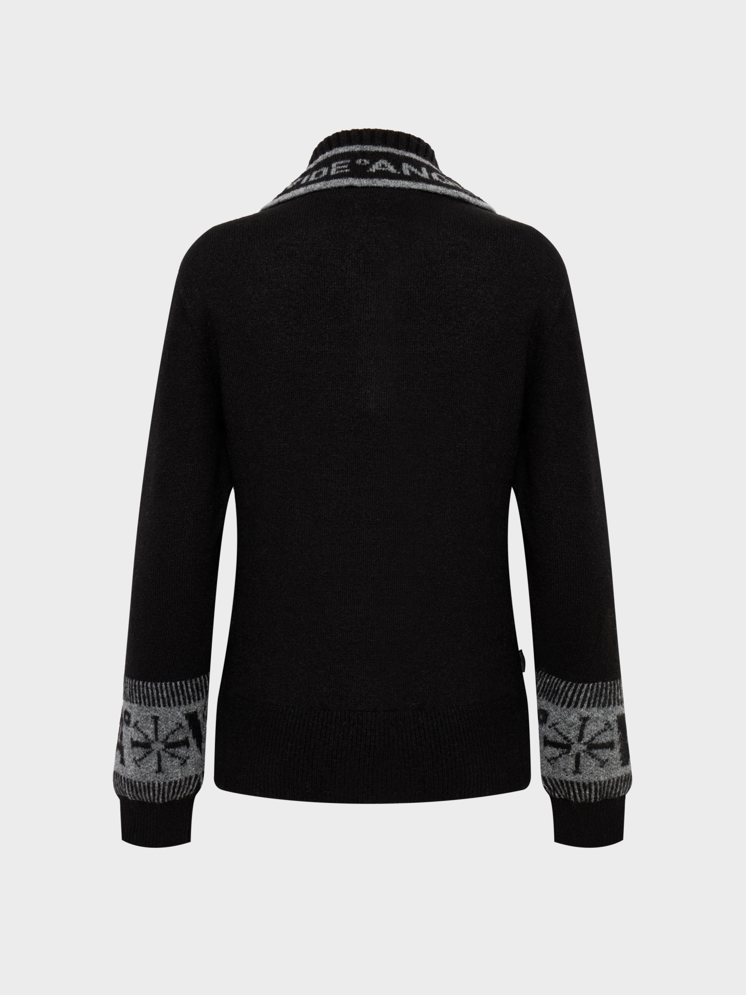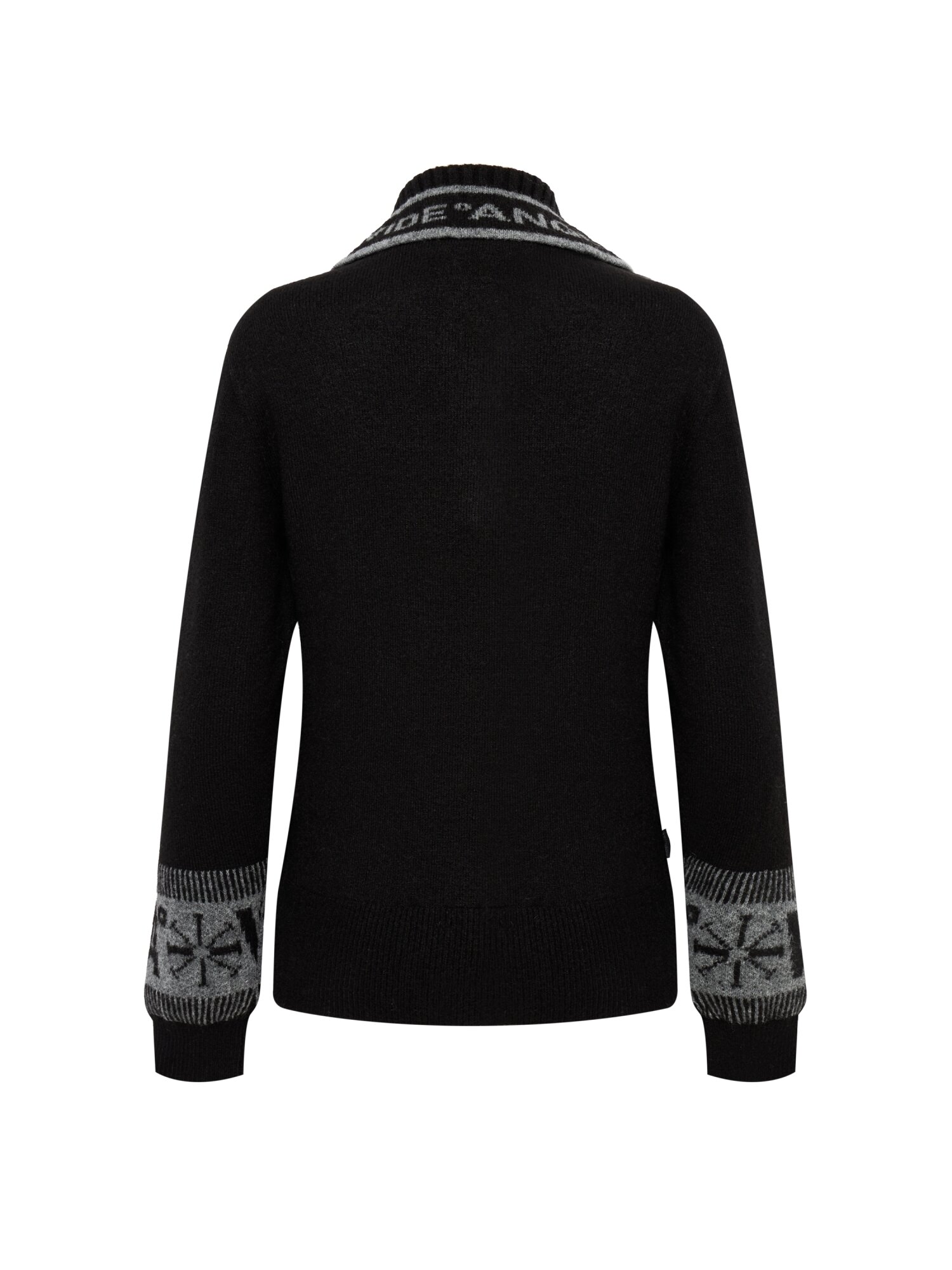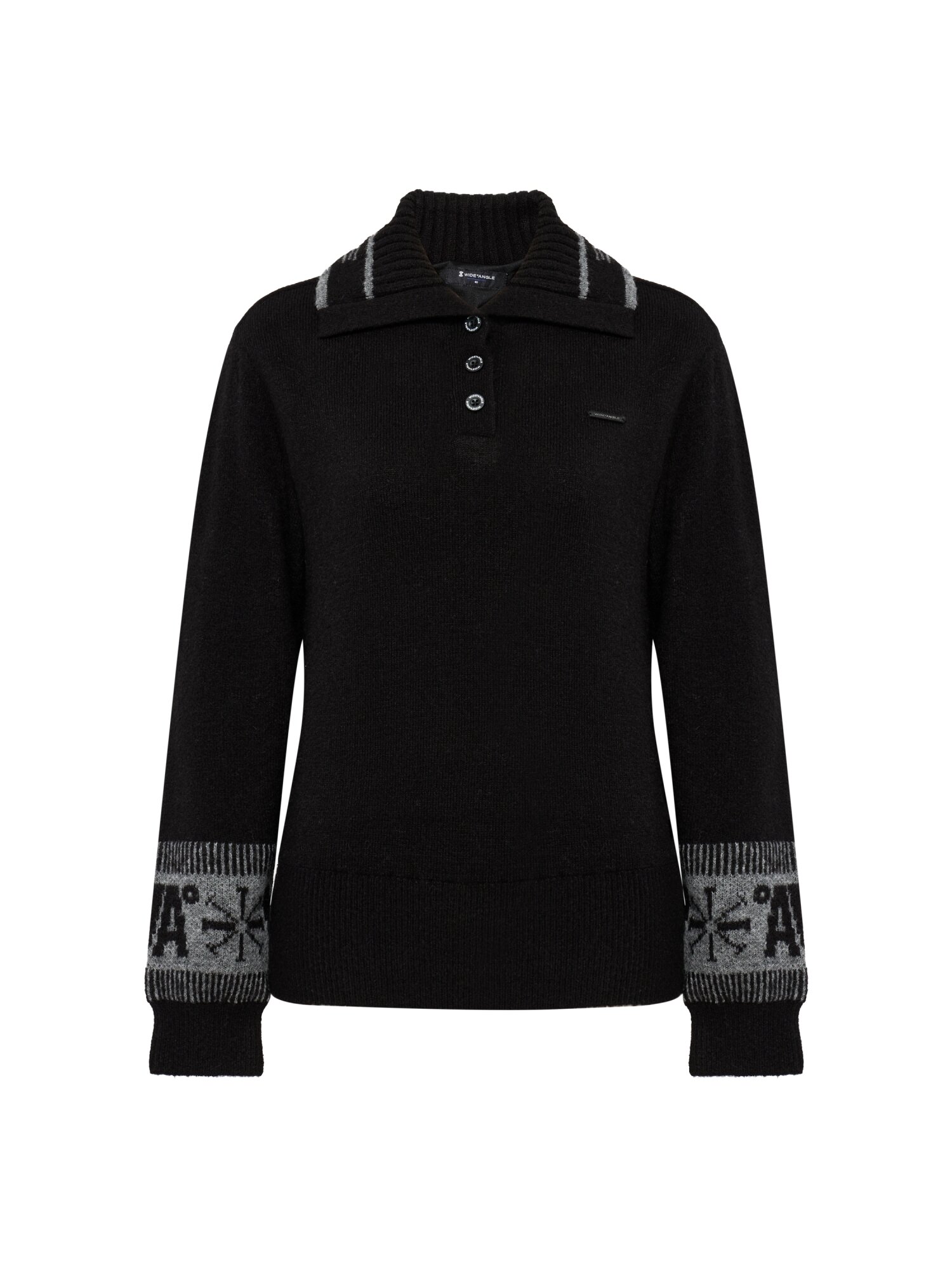 - 노르딕 패턴의 소매와 와이드칼라넥이 포인트인 겨울 방풍 스웨터