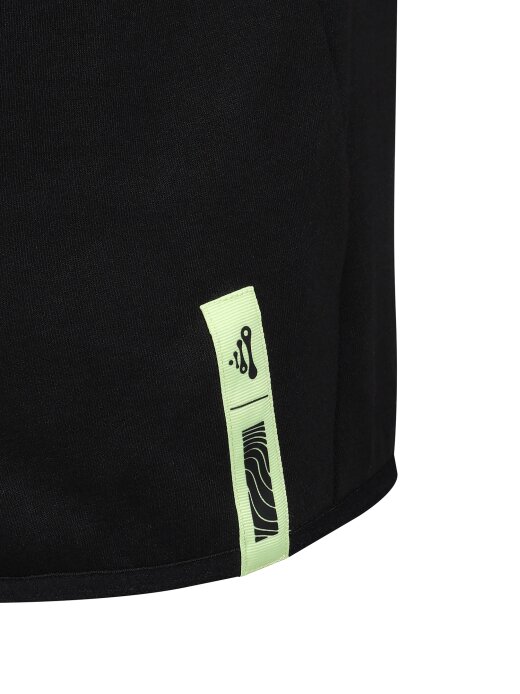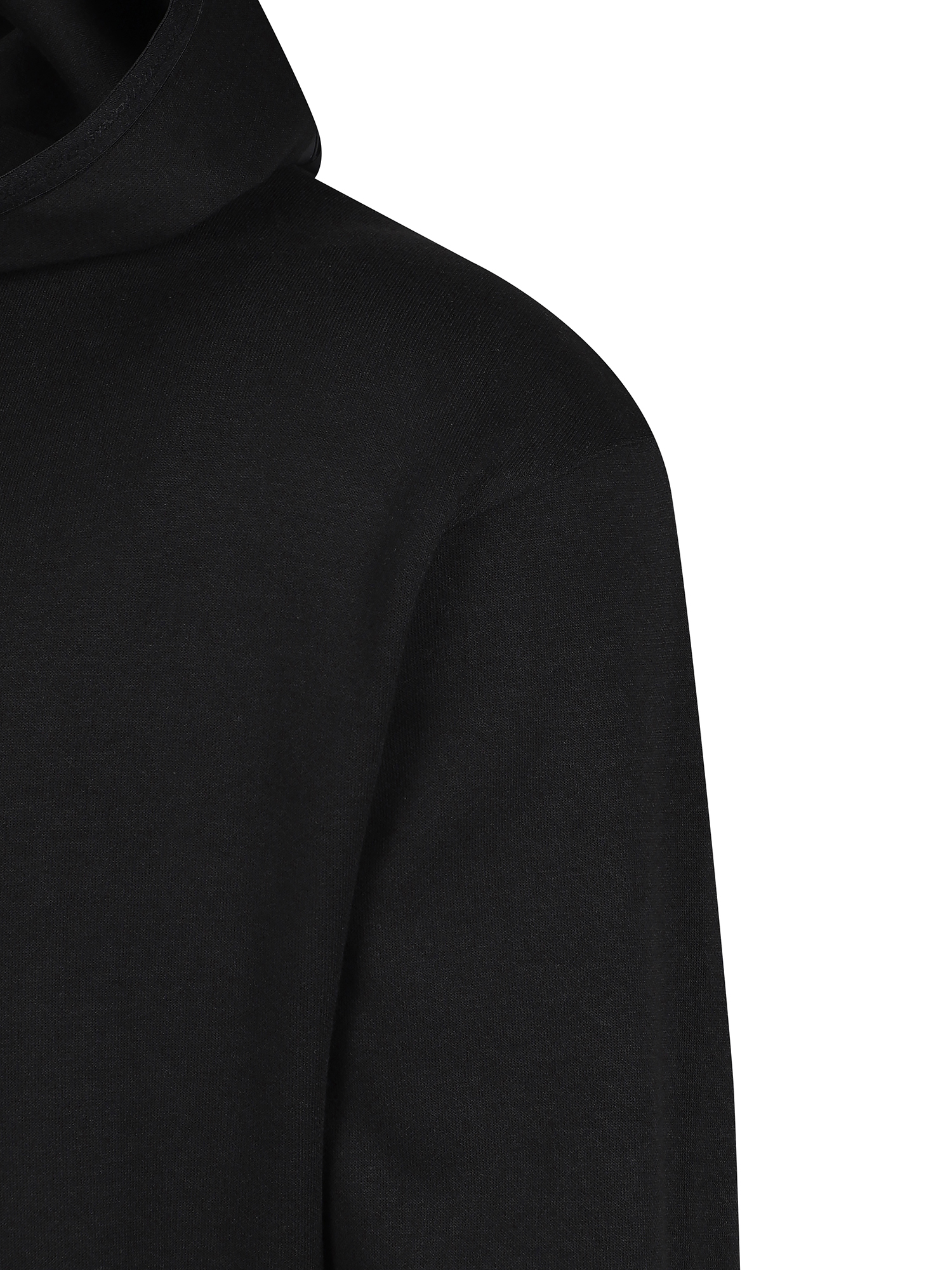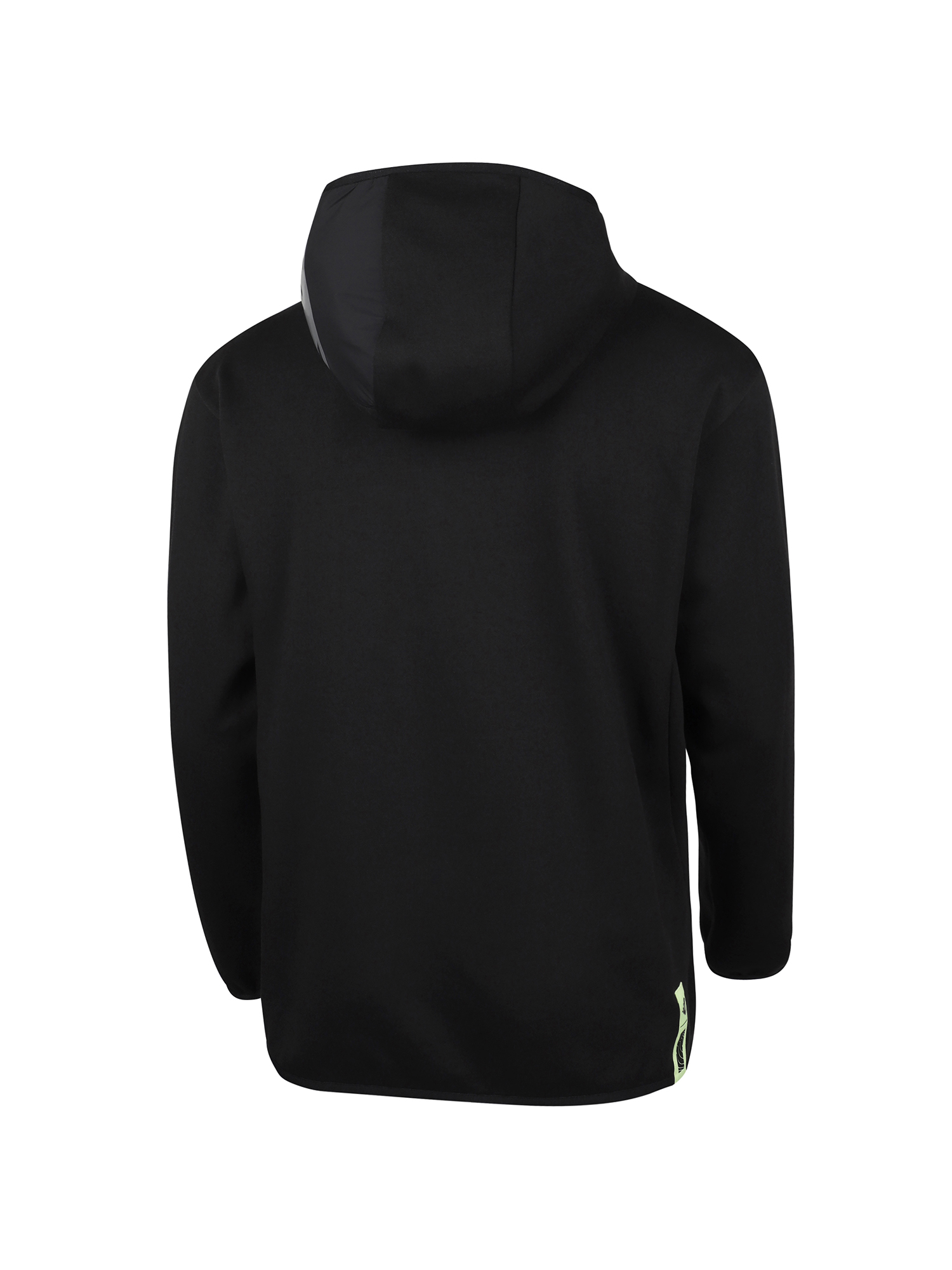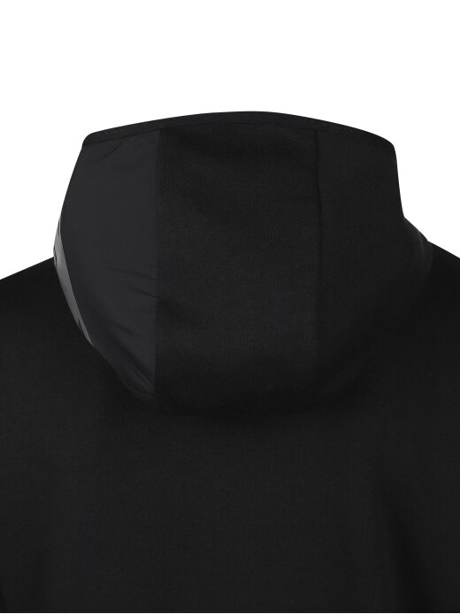 -후드 좌측 우븐 배색과 설포 프린트로 포인트 부여