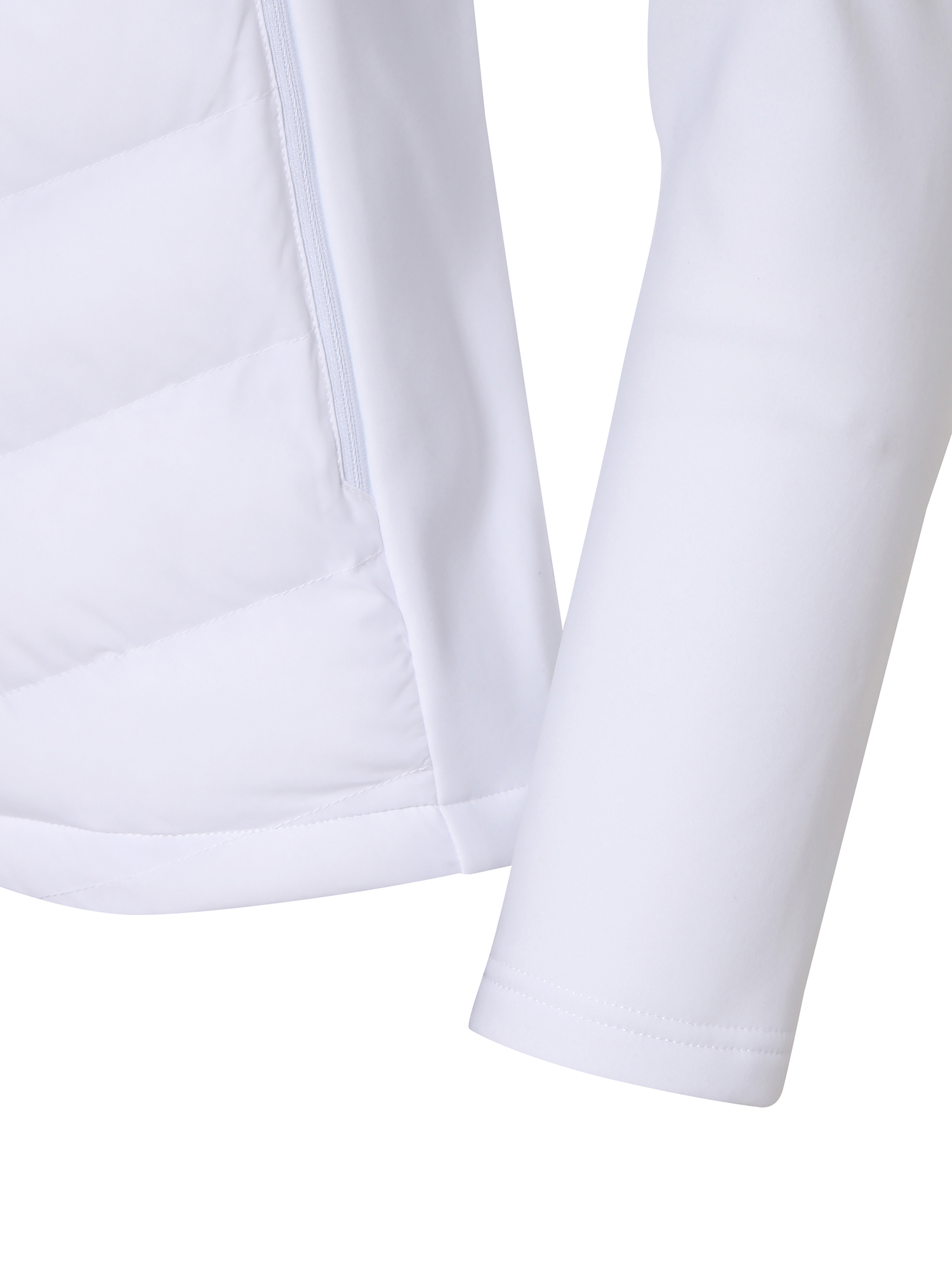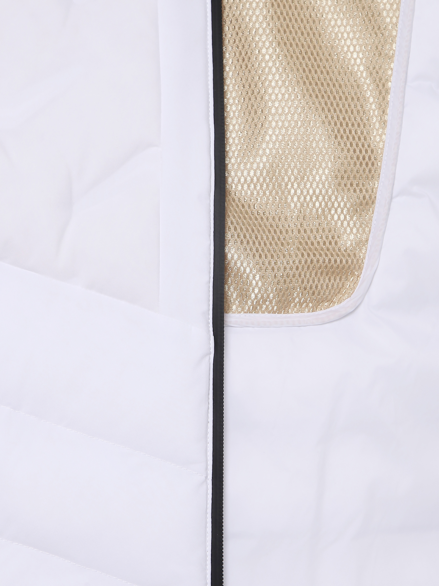 - 퀼팅 라인이 없는 튜브형 우븐 소재를 사용하여, 다운 삼출 최소화 (몸판 상단)