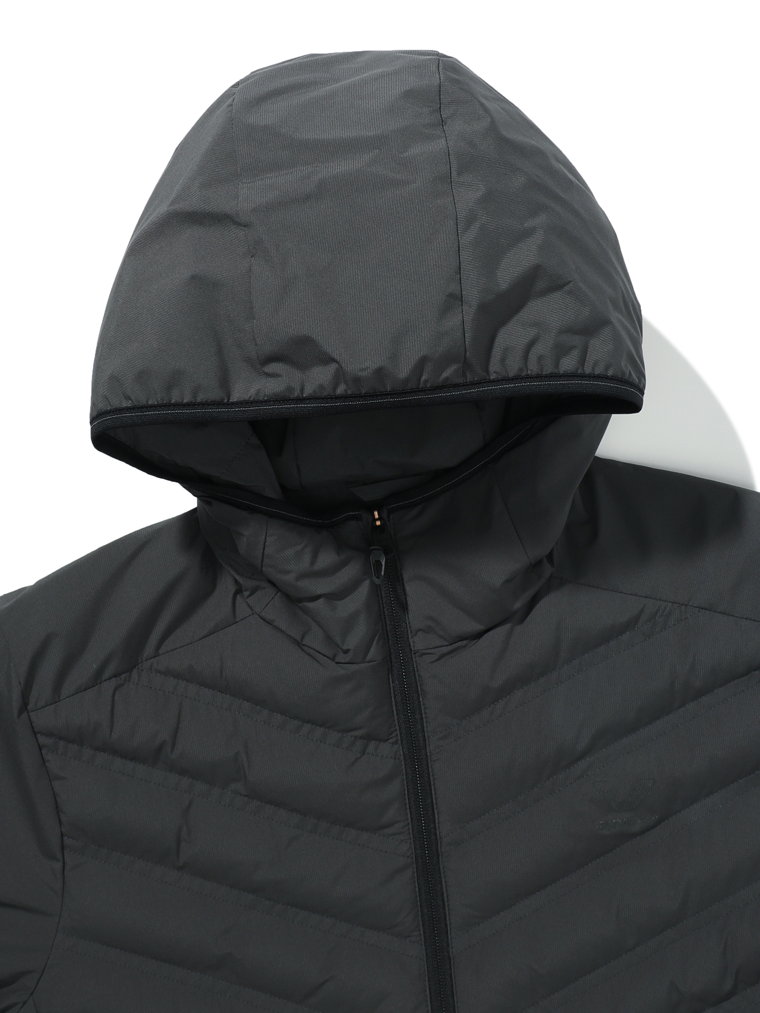 [런닝에 최적화하여 가벼운 2L 소재가 적용된, 스포티한 외관의 슬림 패딩 후드자켓]