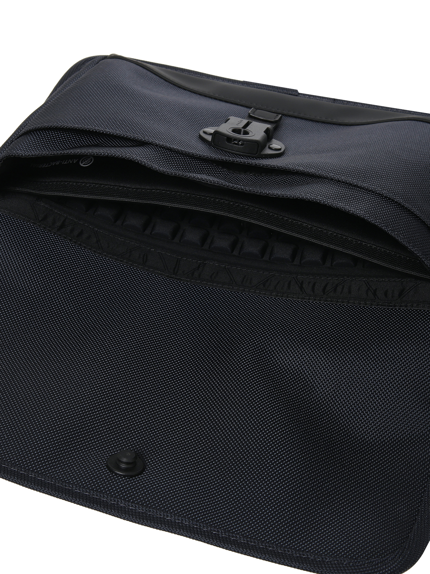 - 메인 포켓 안쪽의 패드 포켓 안쪽면은 충격 방지용 엠보 성형 몰드를 사용했습니다.