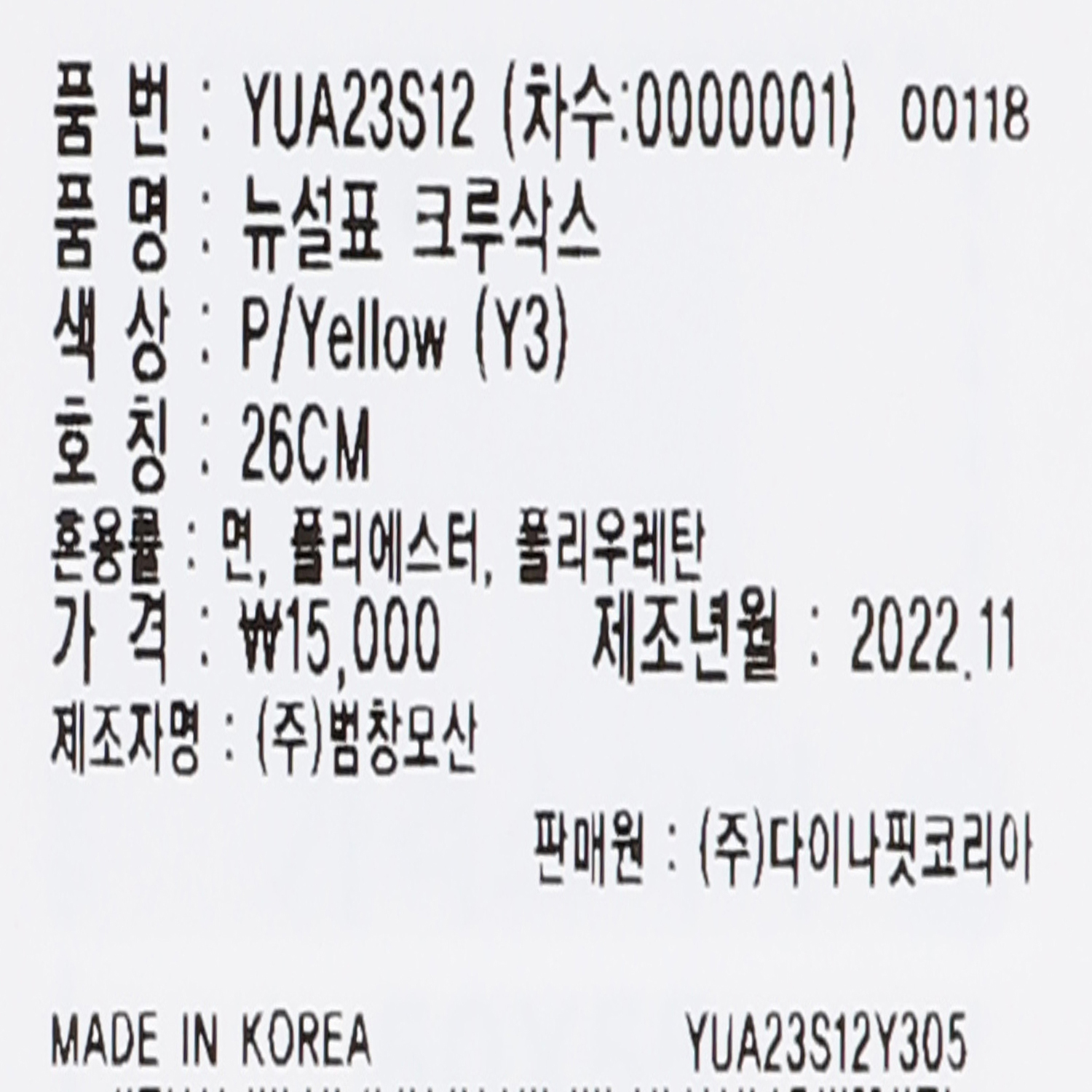 뉴설표 크루삭스 (P/Yellow)