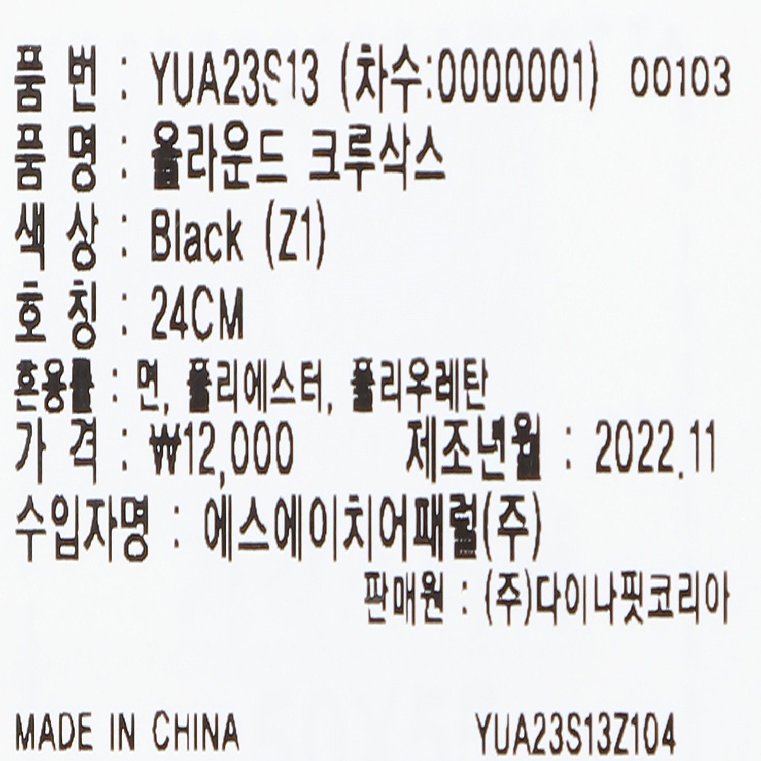 올라운드 크루삭스 (Black)