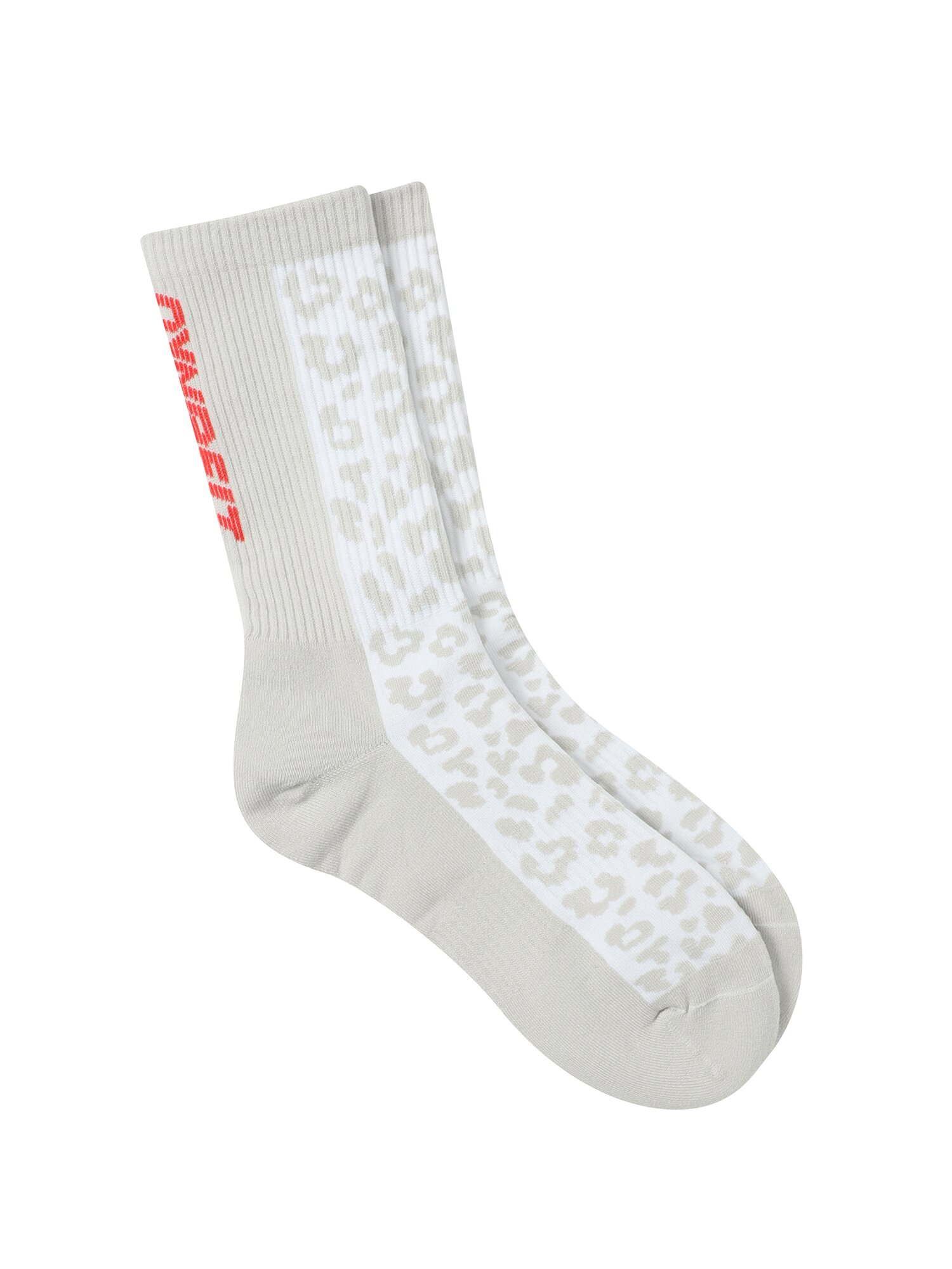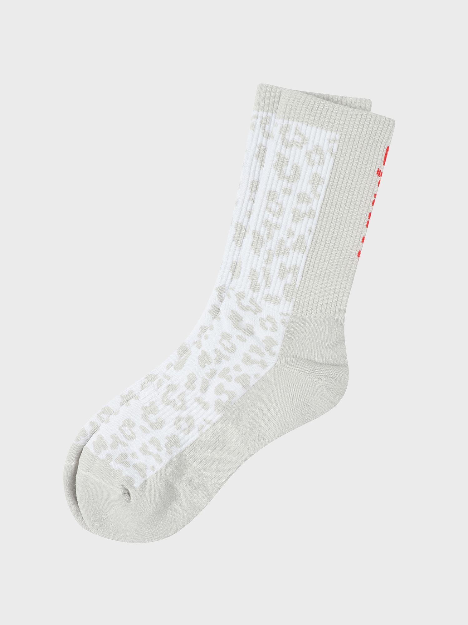 - 발등부터 발목 앞면까지 레오파드 패턴, 뒷면에는 세로형 로고를 적용.