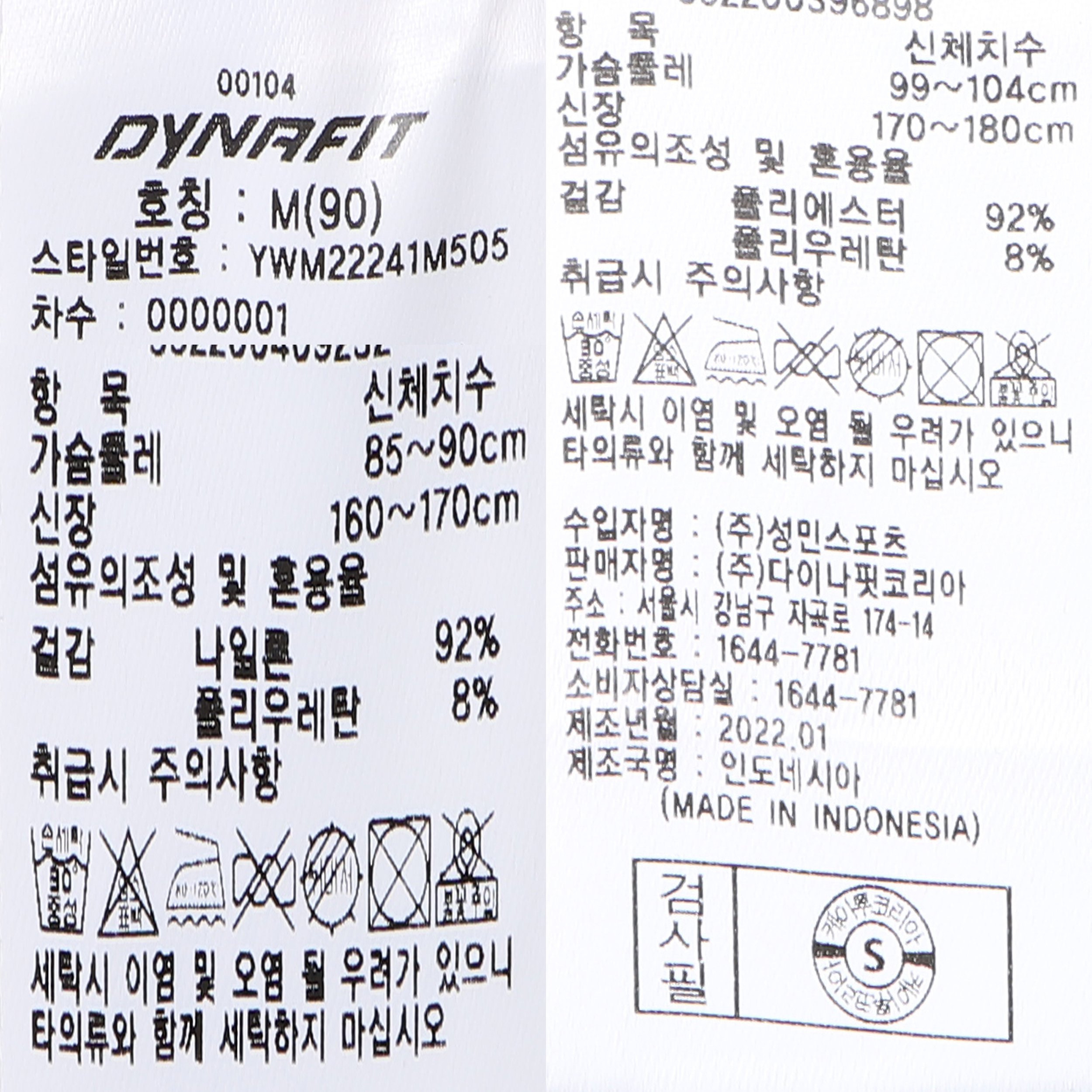 사이즈 가슴둘레 어깨너비 상의길이 소매길이 소매부리 소매통