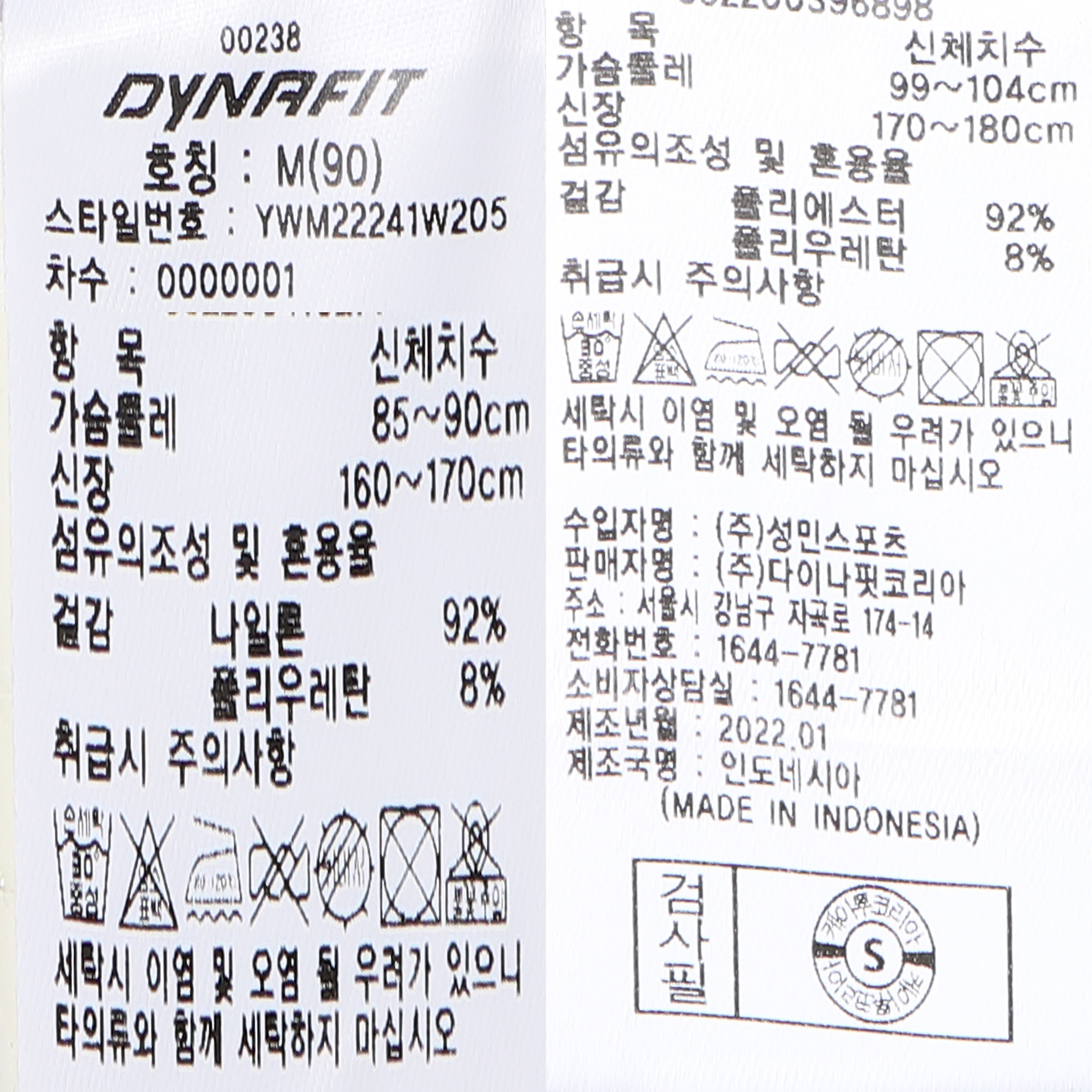 사이즈 가슴둘레 어깨너비 상의길이 소매길이 소매부리 소매통