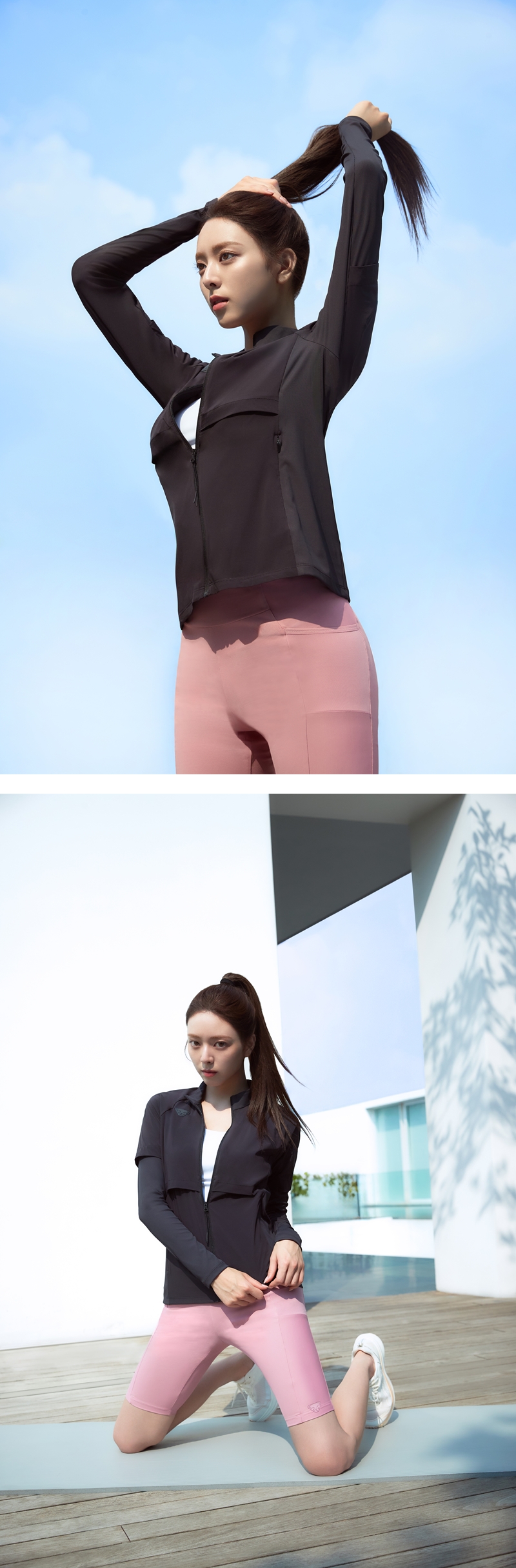 -골지 원단에 신축성 좋은 원단을 하이브리드 하여 활동성 및 디자인 업그레이드