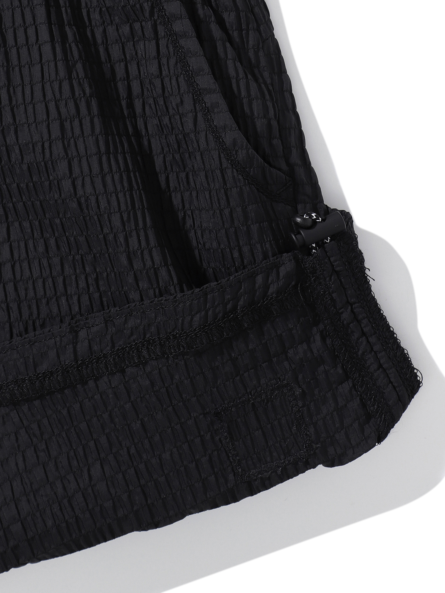 - 밑단 옆 셔링 디테일을 이용한 여성스러움과 활동성 증대