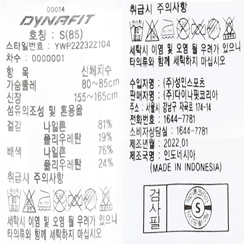 사이즈 가슴둘레 어깨너비 상의길이 소매길이 소매부리 소매통