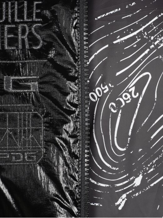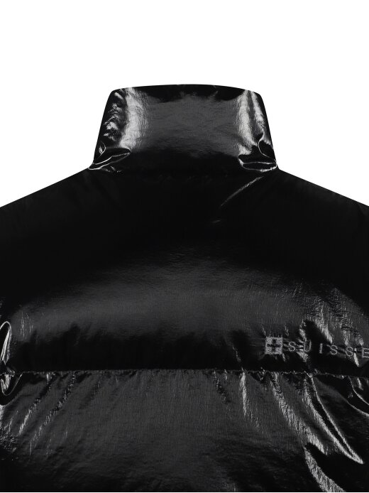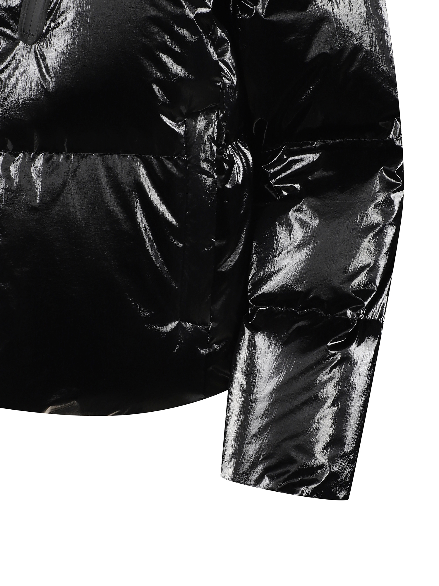 [글로시한 외관의 와펜 플레이가 돋보이는 여성전용 세미 크롭 다운]