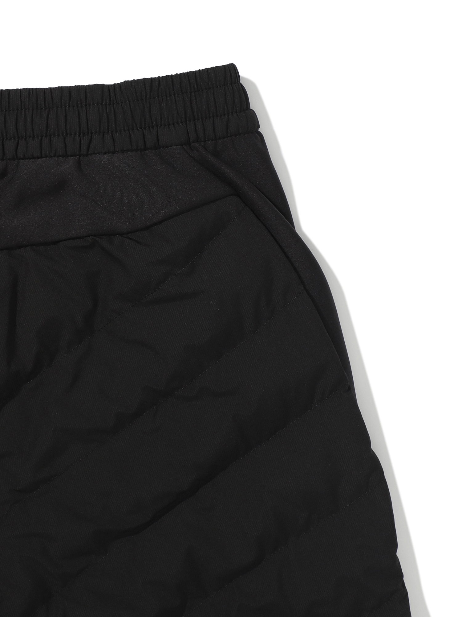 -베이직한 퀼팅 디자인의 뎅고 형 팬츠로, 다양한 외부 활동에 적합한 패딩 팬츠
