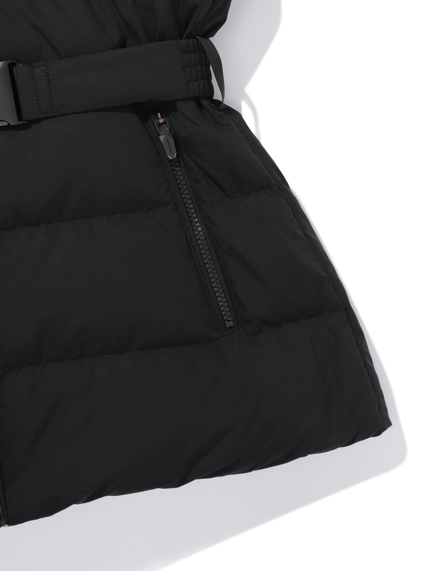- 힙을 살짝 덮는 기장감과 허리벨트로 슬림한 실루엣 연출
