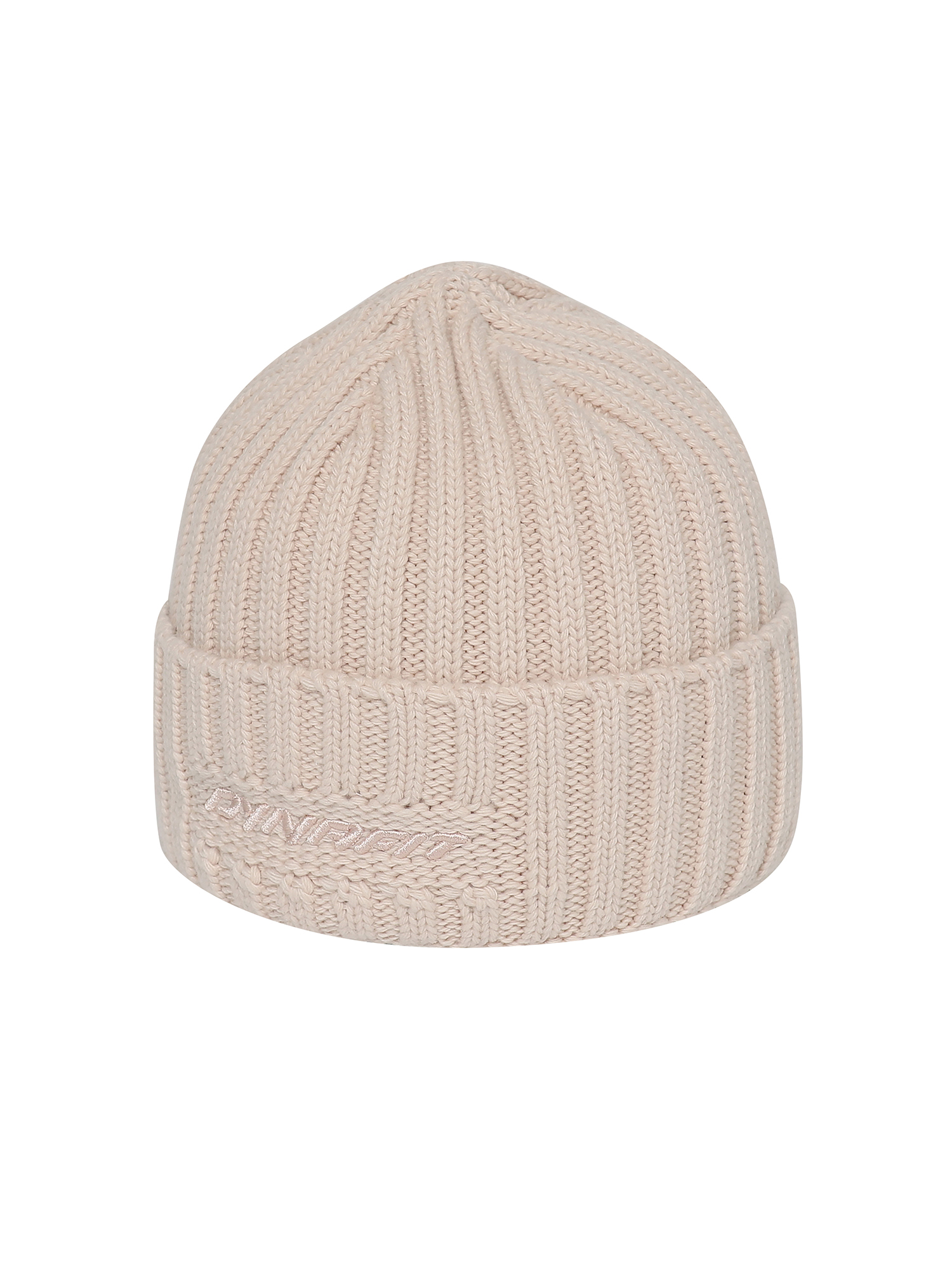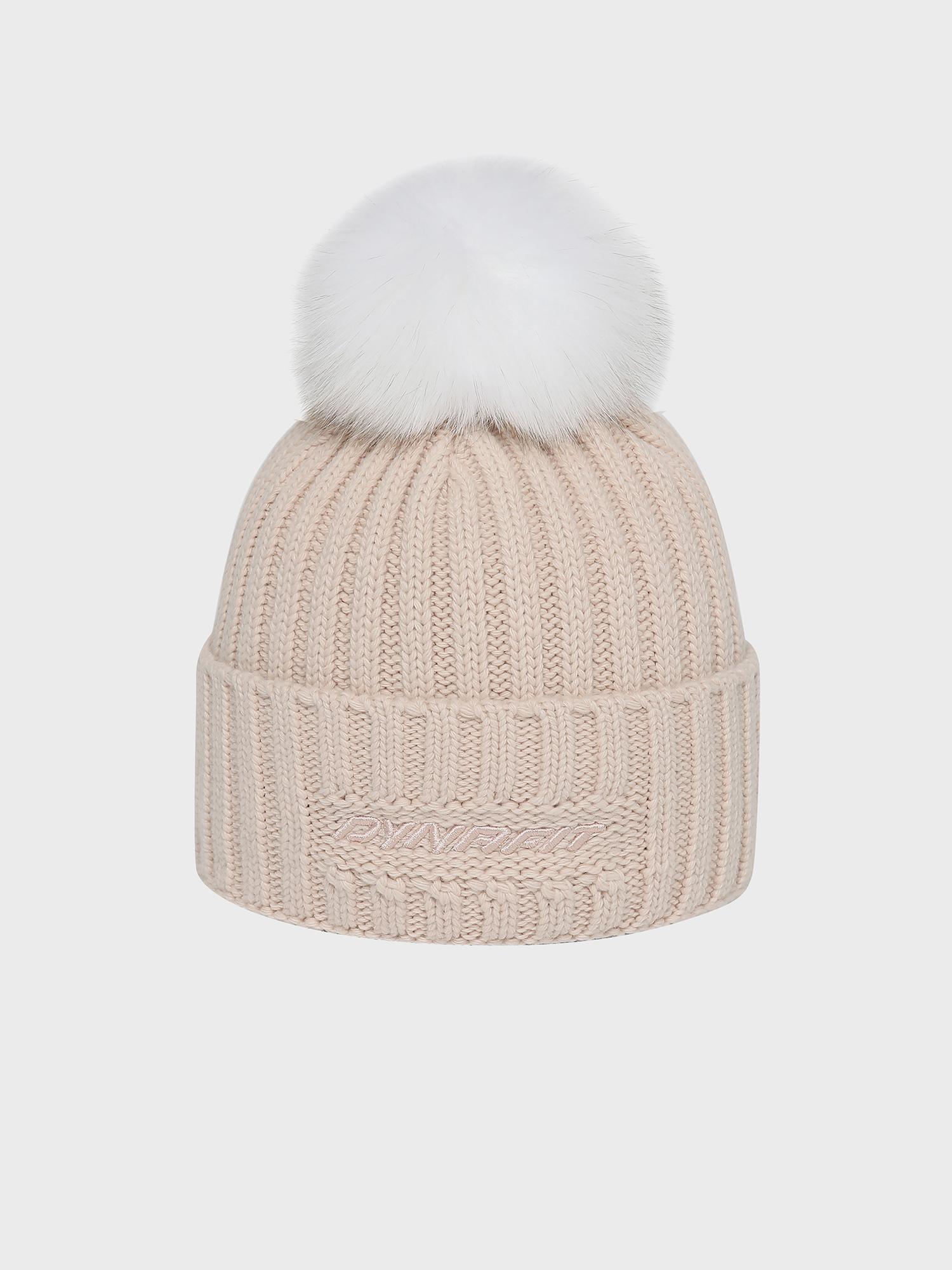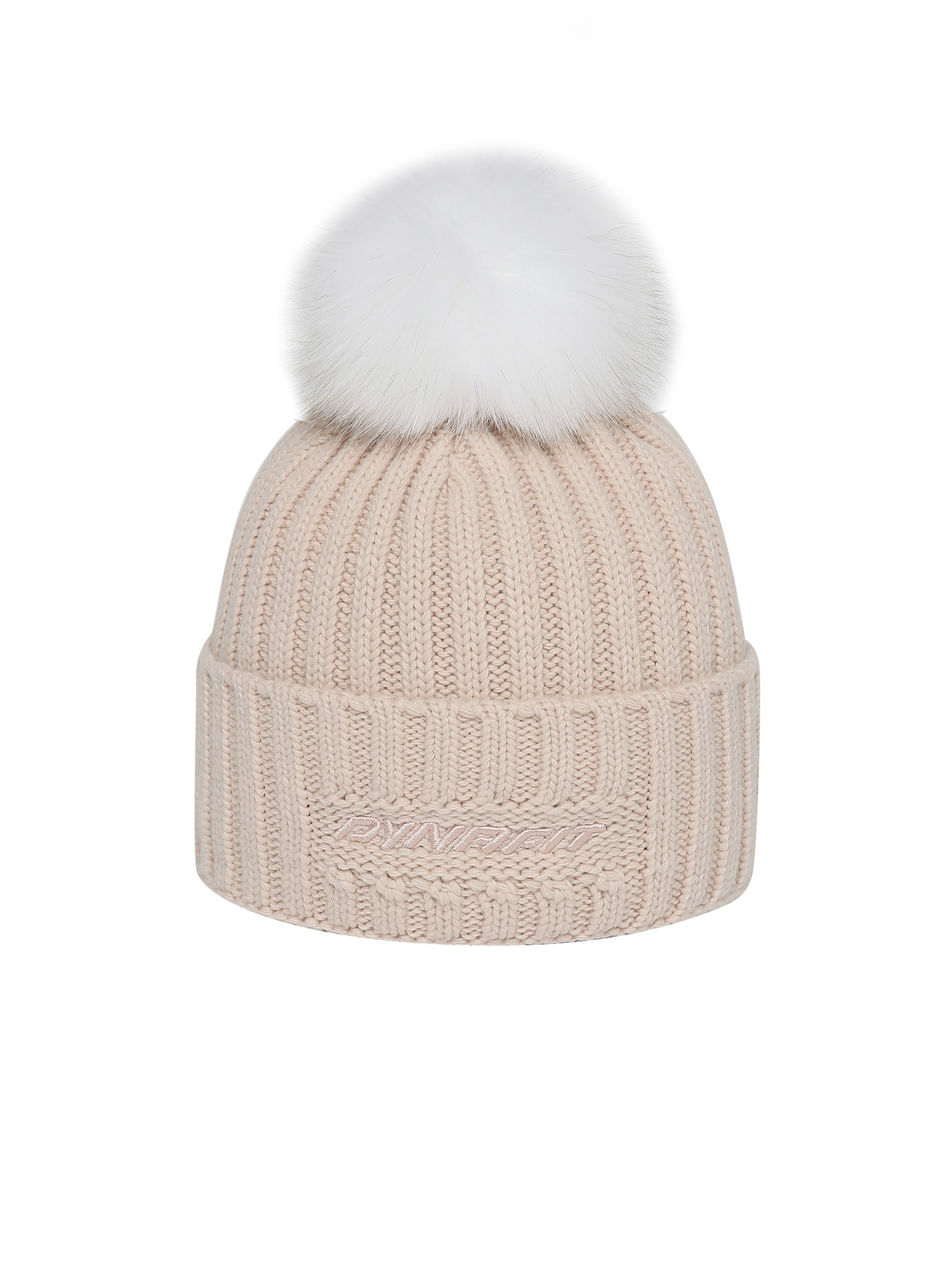 - 솔리드 컬러의 여성용 방울 비니로 원단 매칭 볼륨 자수와 폭스퍼로 포인트를 줌.