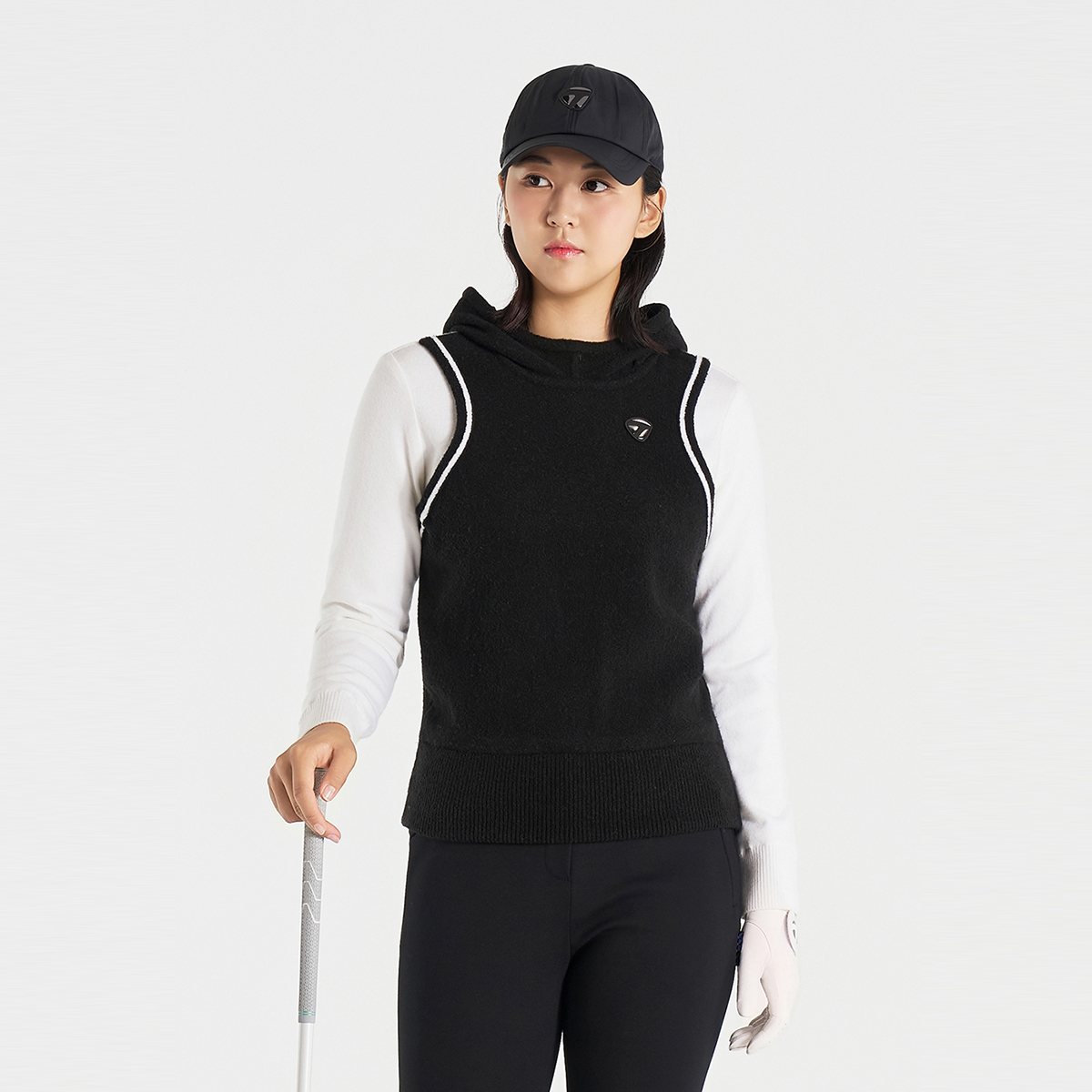 [엑셀러]25FW 여성 레이어드룩 후드 방풍 니트 TWSHO8125-199