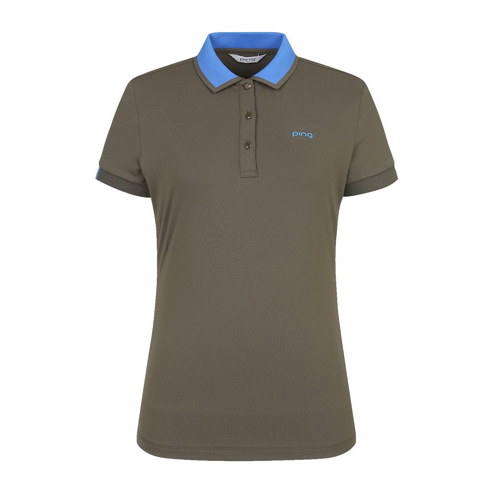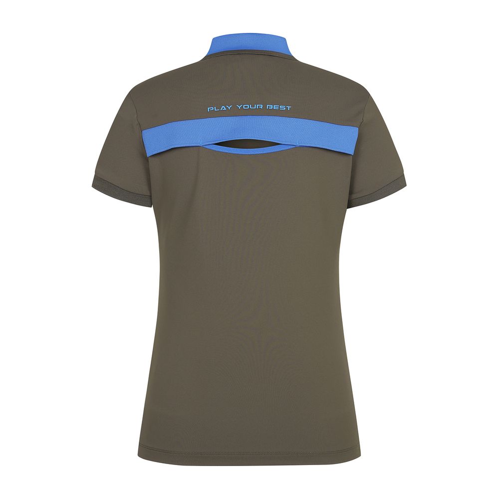 여성 기능성 배색 뒷트임 카라 반팔 티셔츠