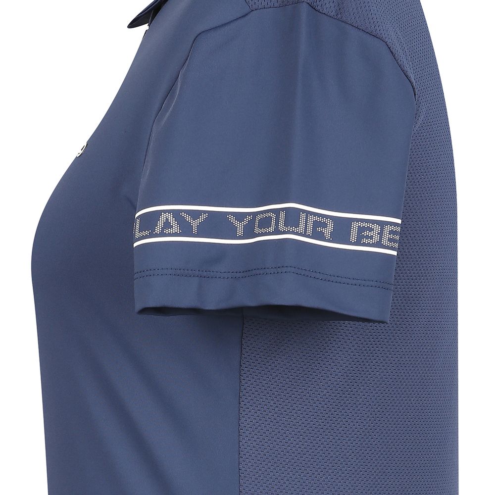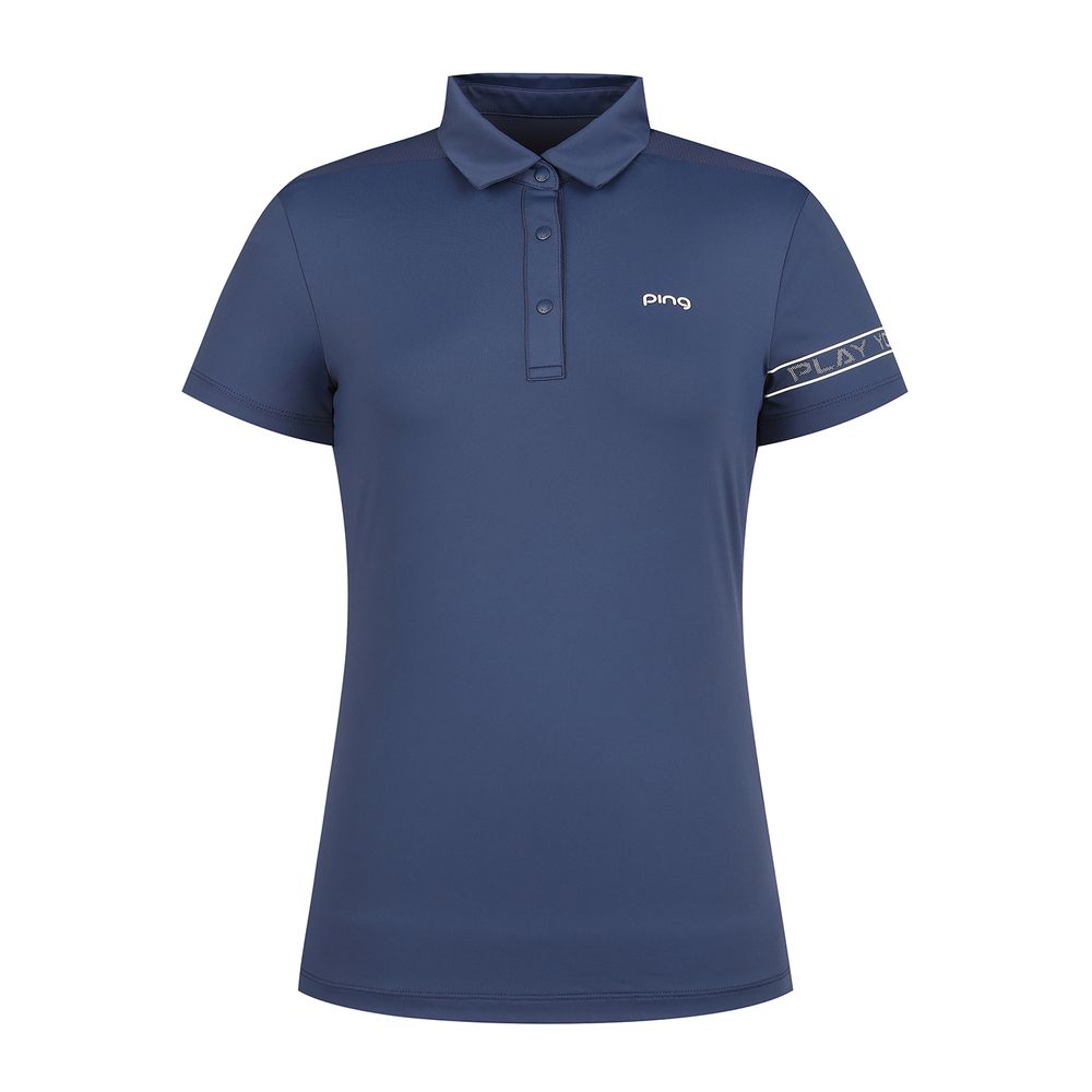 여성 소매 포인트 메쉬 패치 카라 반팔 티셔츠