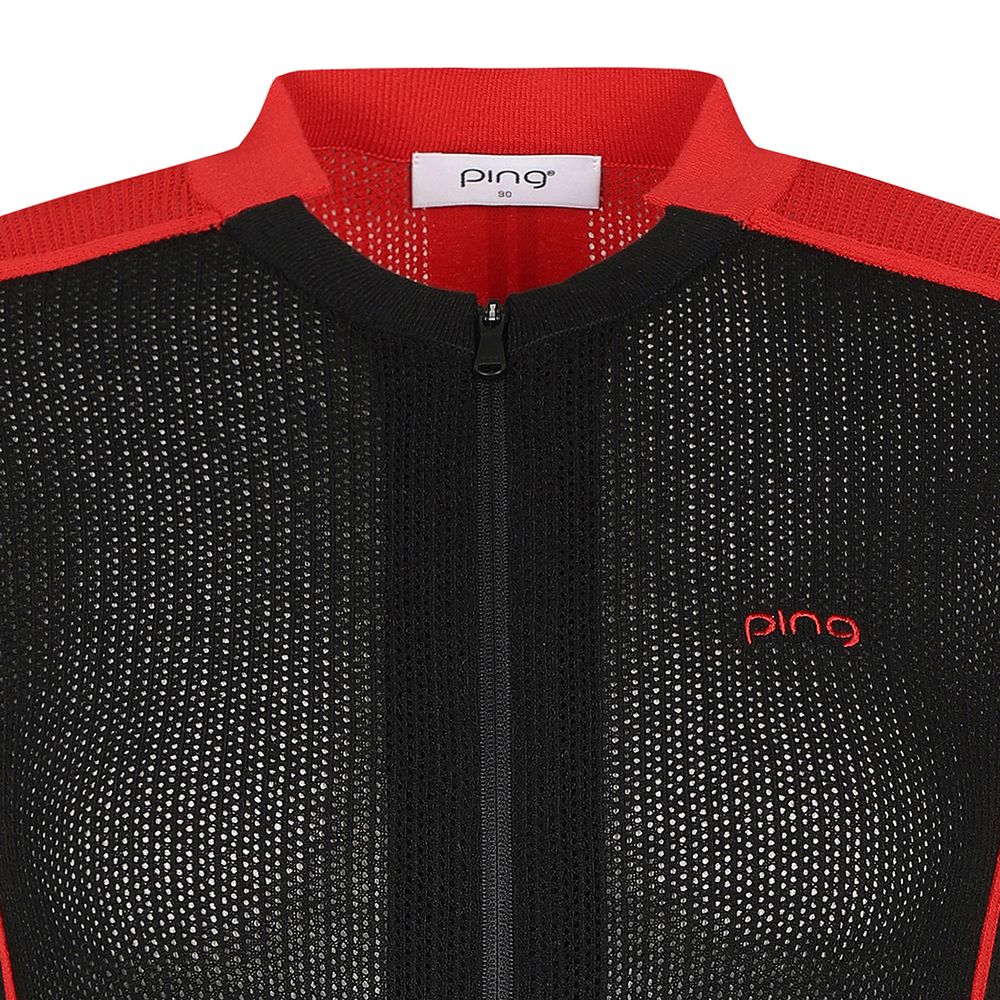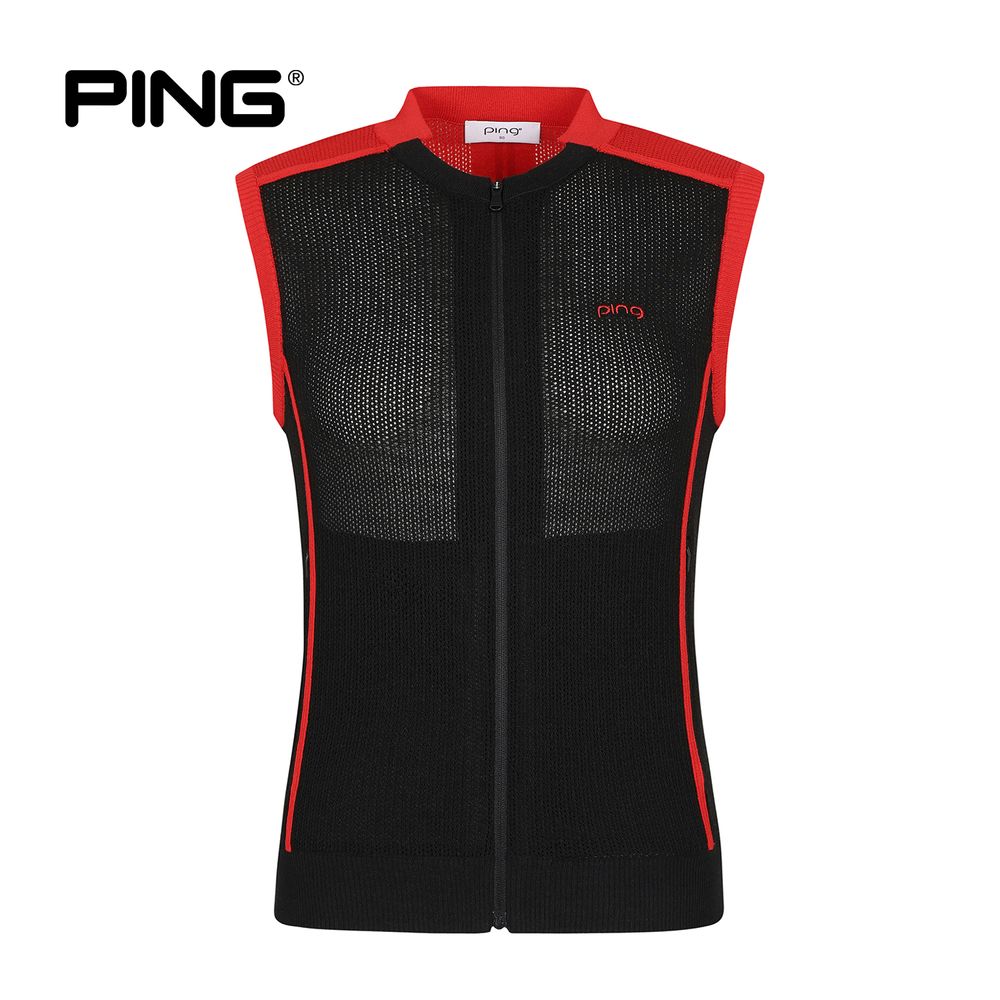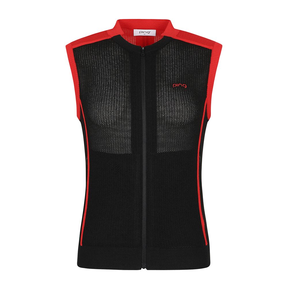 여성 배색 집업 니트 베스트
