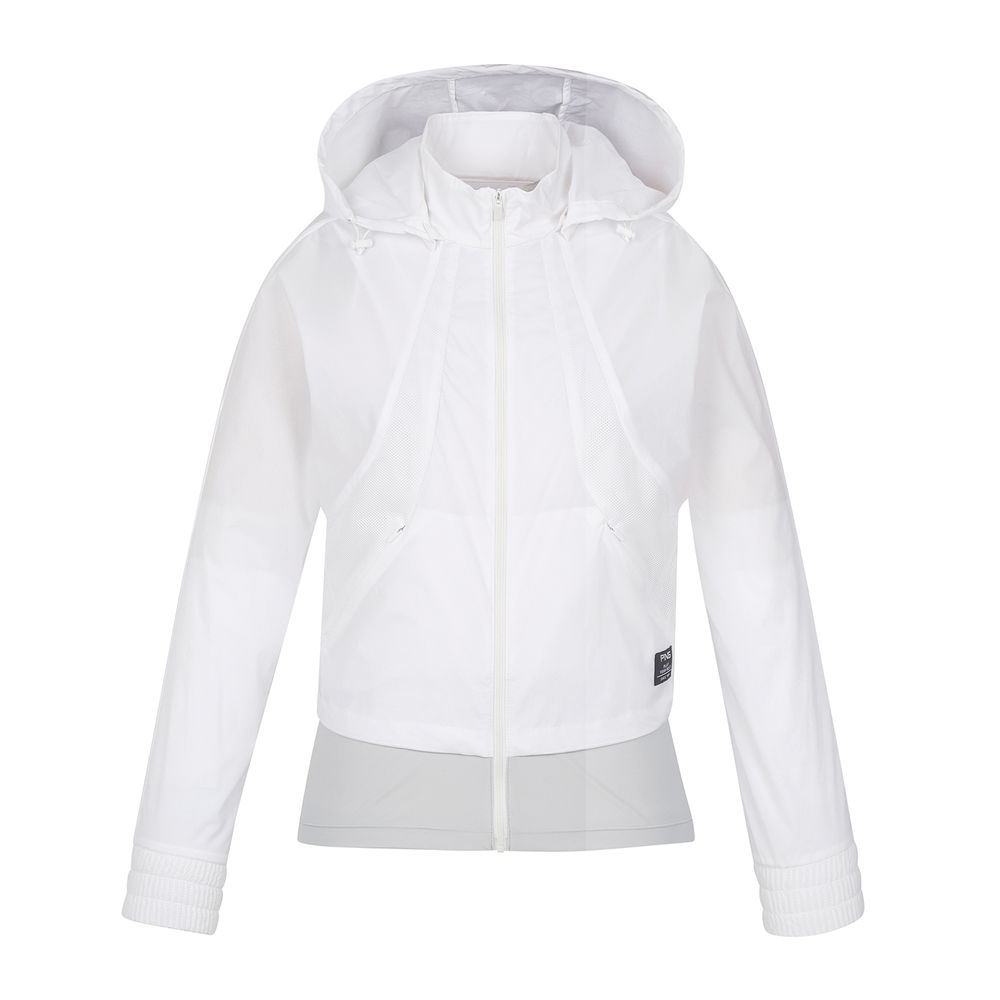 여성 후드 탈부착 메쉬 패치 배색 점퍼