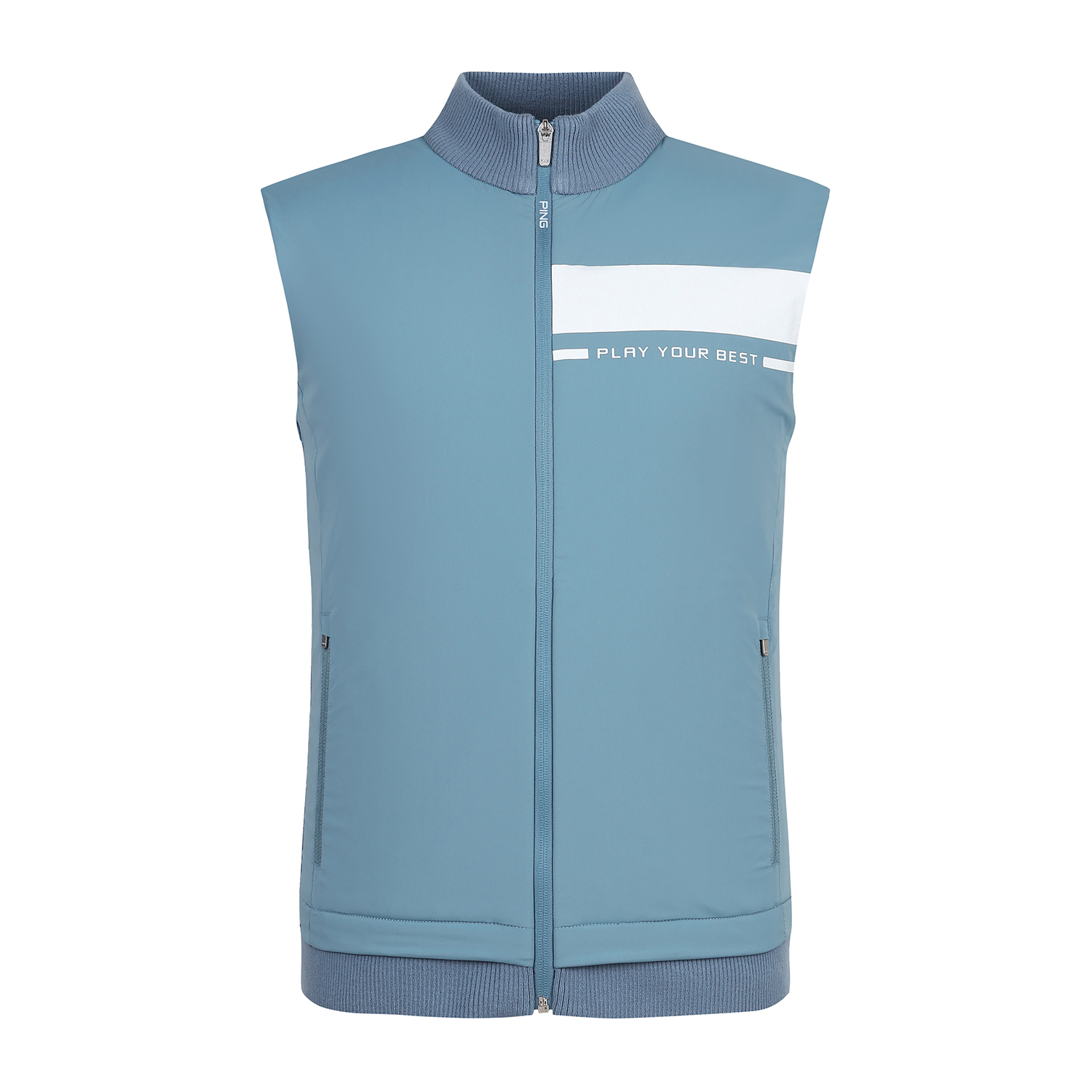 남성 우븐 패치 집업 니트 베스트