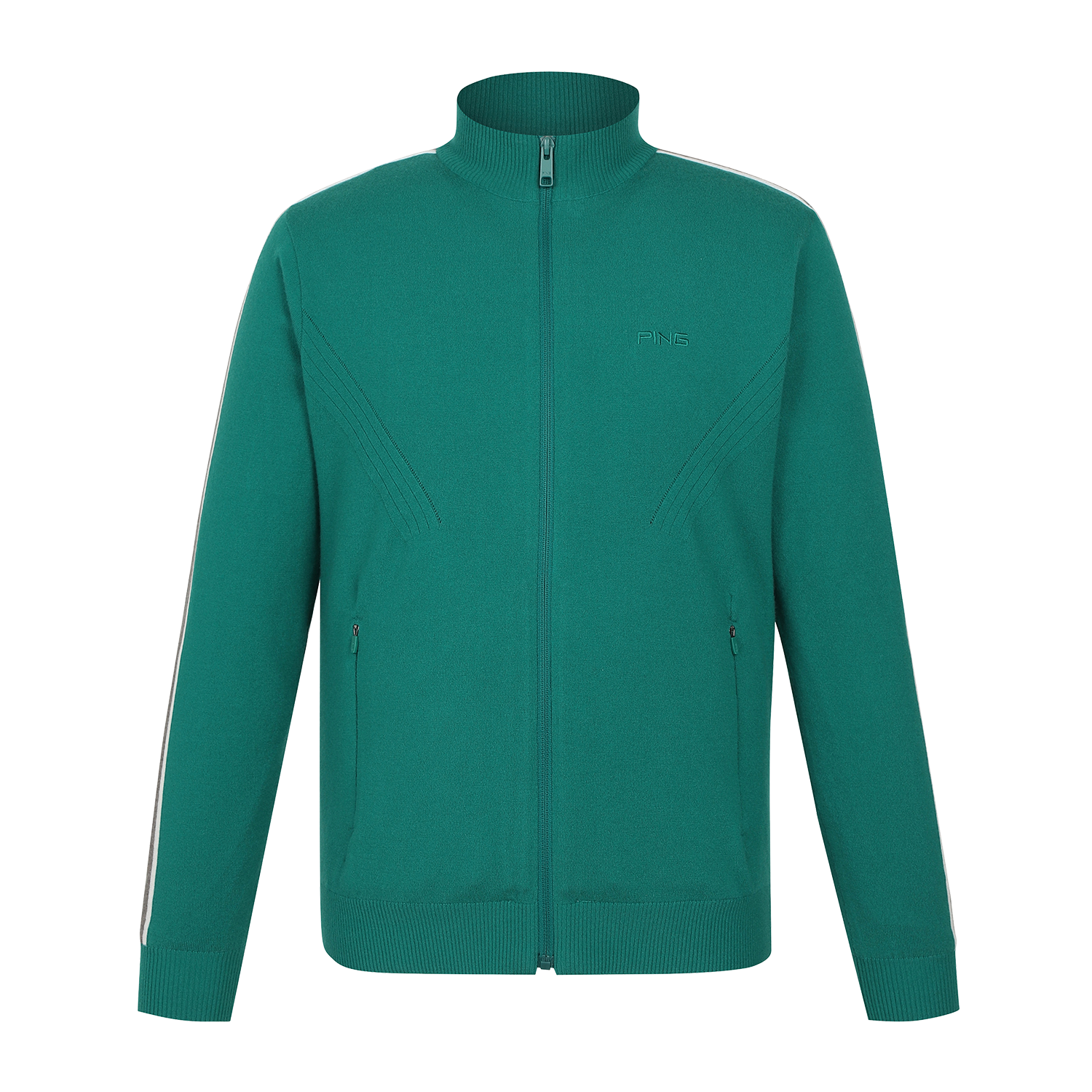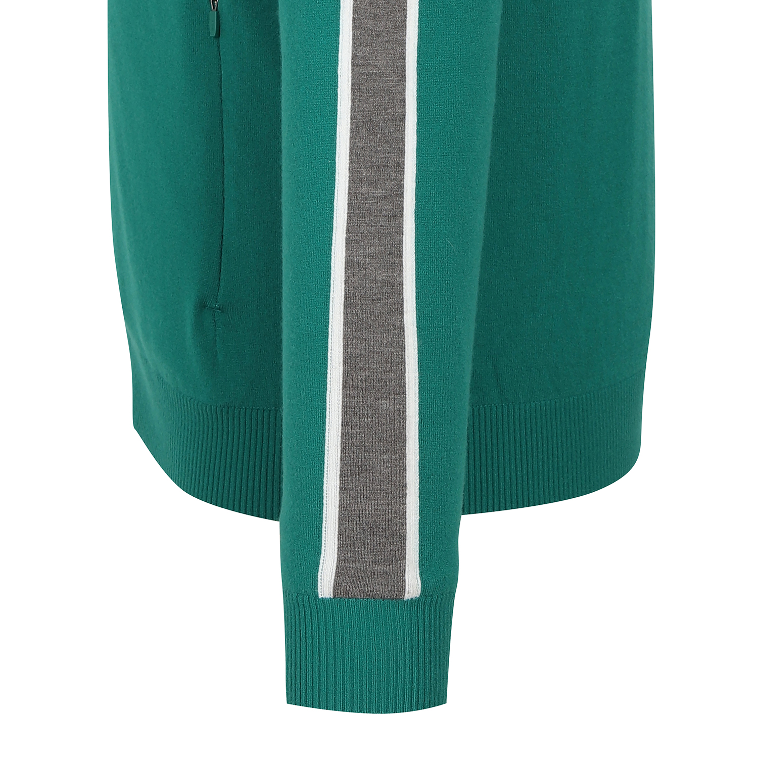 소매의 라인 배색이 포인트이며 방풍 안감으로 보온을 더한 울 혼방 집업 스웨터