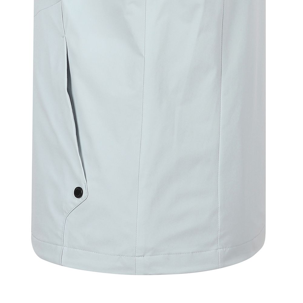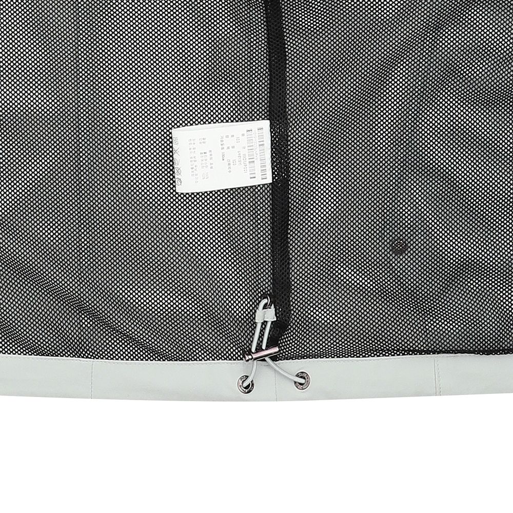 메쉬 안감 내장과 매트한 외관의 고신축 원단을 사용하였으며 지퍼, 스냅, 와펜에 블랙으로 포인트를 준 바람막이