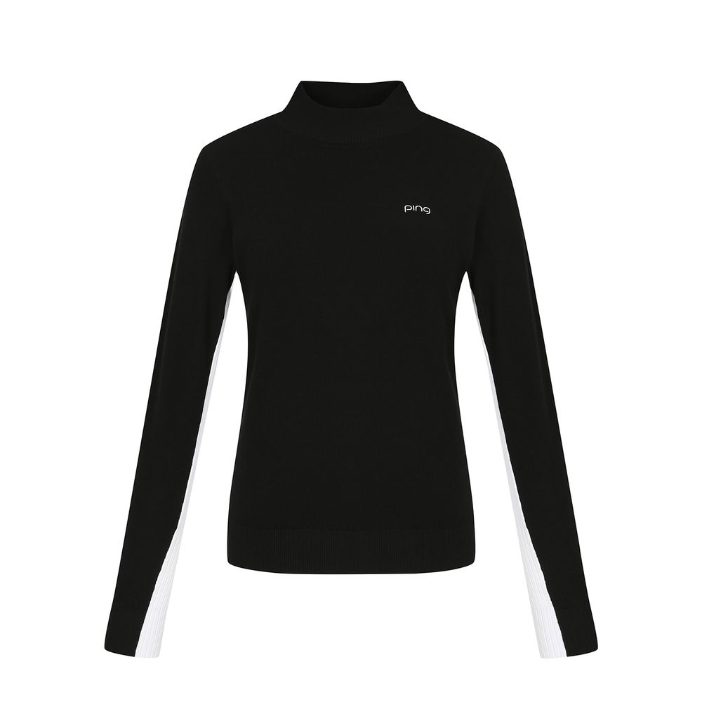 여성 배색 하이넥 긴팔 니트