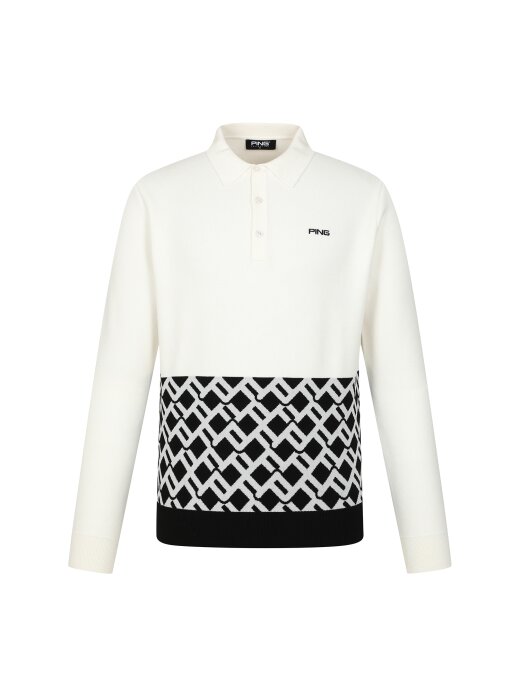 남성 패턴 배색 포인트 카라 긴팔 니트