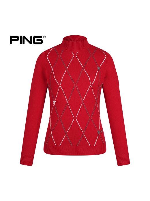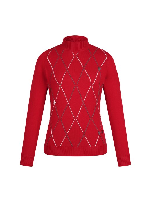 여성 아가일 선인장 모크넥 긴팔 니트