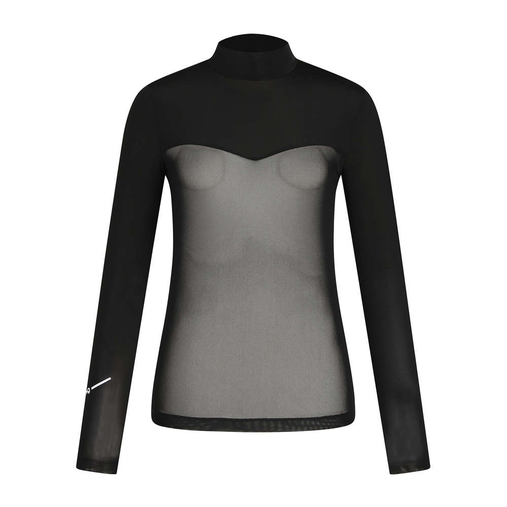 여성 메쉬 믹스 반목 긴팔 이너 티셔츠
