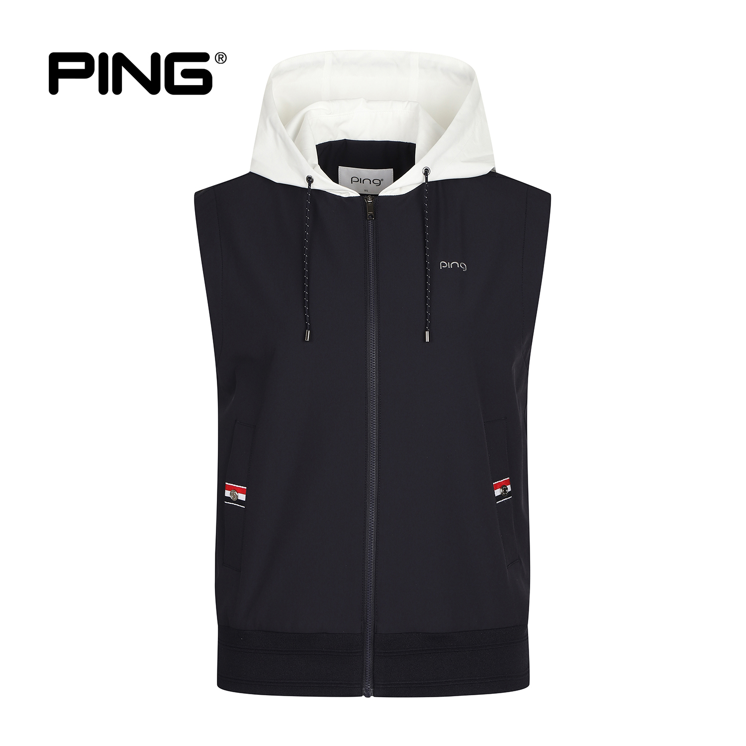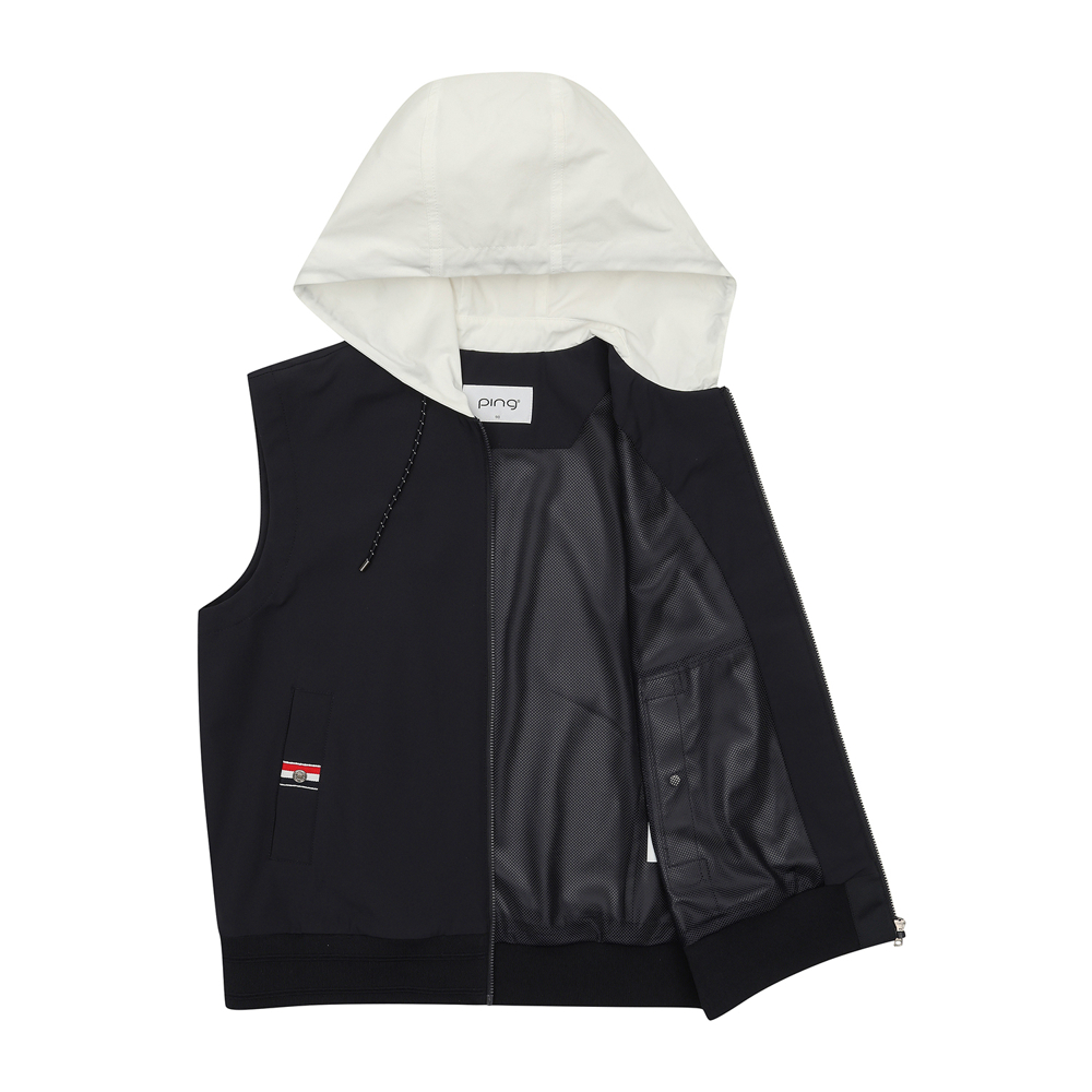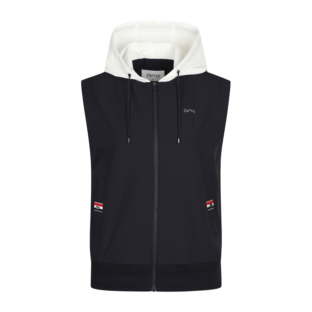 여성 후드 배색 점퍼 베스트