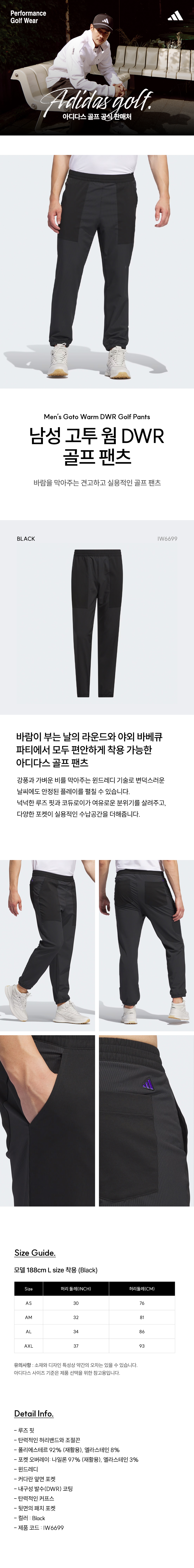 아디다스골프 24FW 남성 고투 웜팬츠 블랙 IW6699