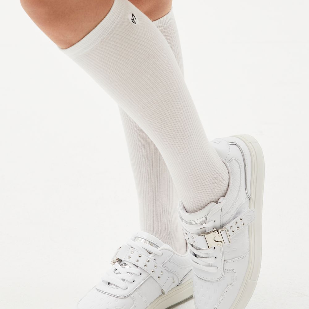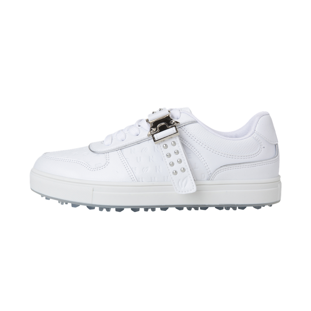 * 버클 스트랩 스파이크리스화 - 견고하고 접지력이 강한 스파이크 클릿형태의 여성 골프화. 아이코닉한 로고 패턴과 스터드 스트랩 디테일이 특징