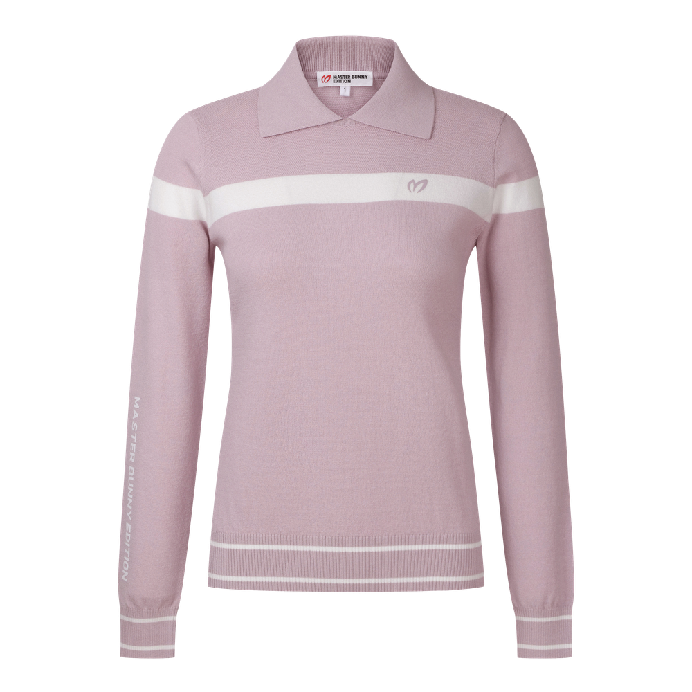 여성 배색 라인 칼라 니트