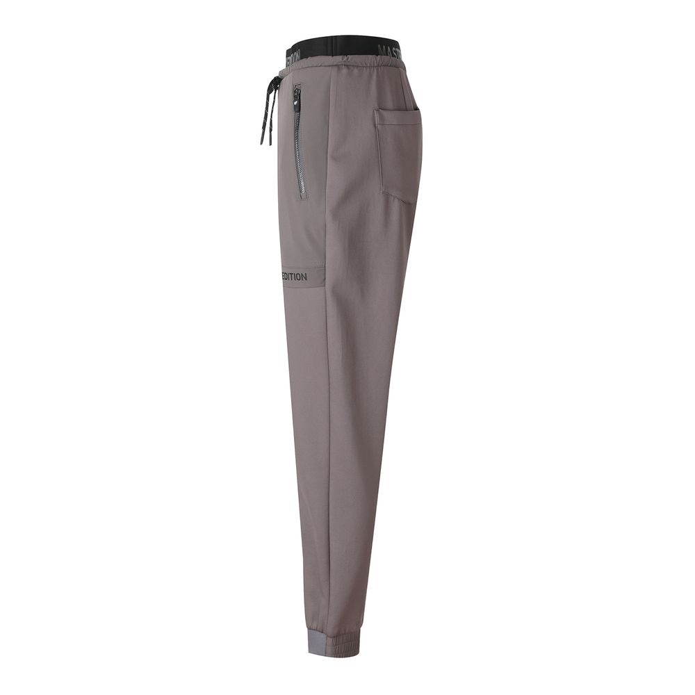 신축, 회복이 좋은 고 기능성 소재인 까르비코 소재에 우븐 패치한 디자인에 포인트를 주었고, 뒷 주머니 스터드 핫피스 장식으로 디테일 강조한 여성 트레이닝 팬츠.* 421C1TR091 SET-UP