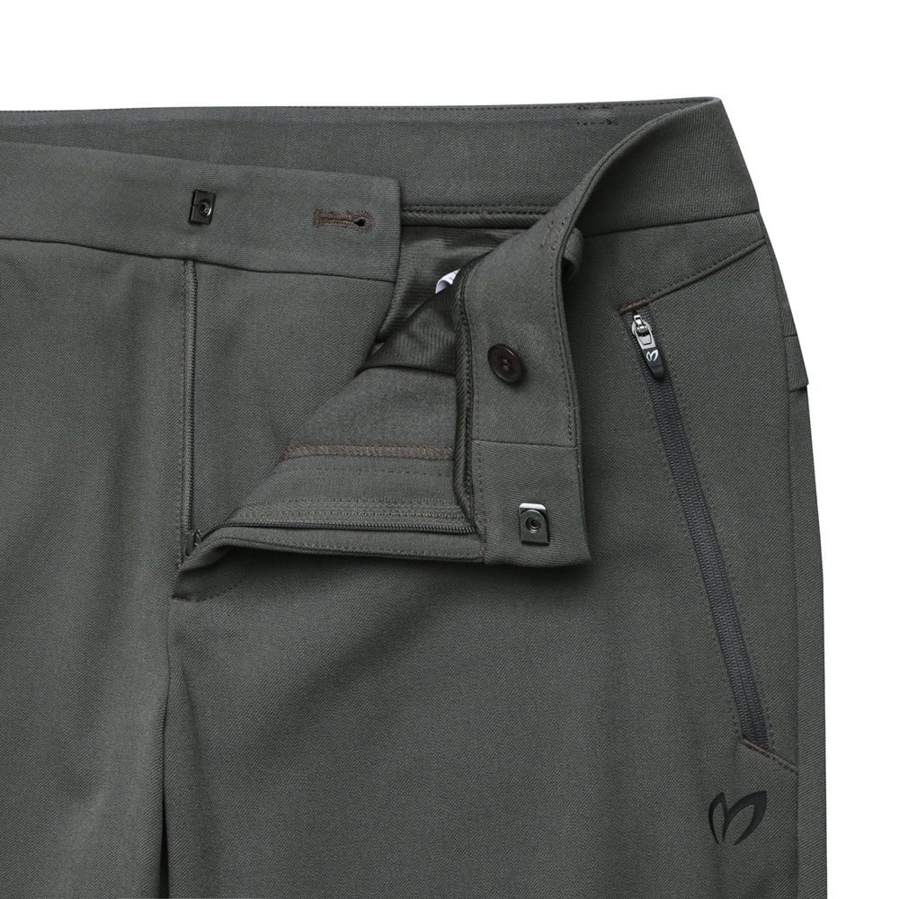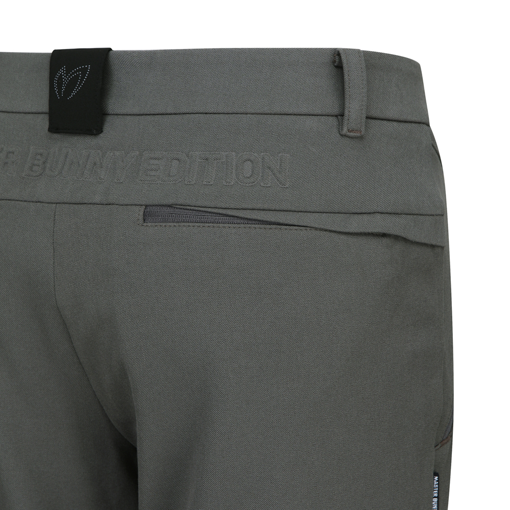 바지 뒤요크 선 위로 마스터 바니 로고로 포인트를 준 기본 핏 팬츠캐주얼한 외관의 T/R/PU 소재 이면에 기모가 되어 있어 보온성이 좋으며 신축성이 뛰어난 소재.