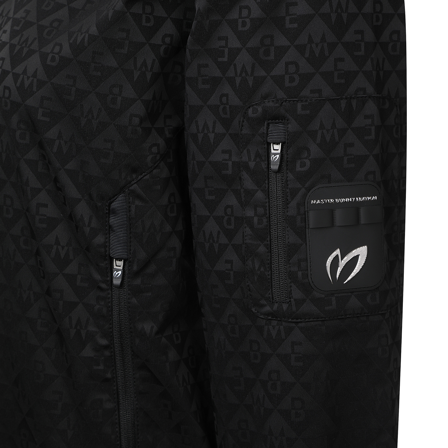 다이아몬드 형태의 마스터바니 로고로 짜여진 자가드 원단이 사용된 시보리 점퍼. 티꽂이 와펜이 패치된 아웃포켓을 소매에 부착하여 수납성을 높인 디자인.