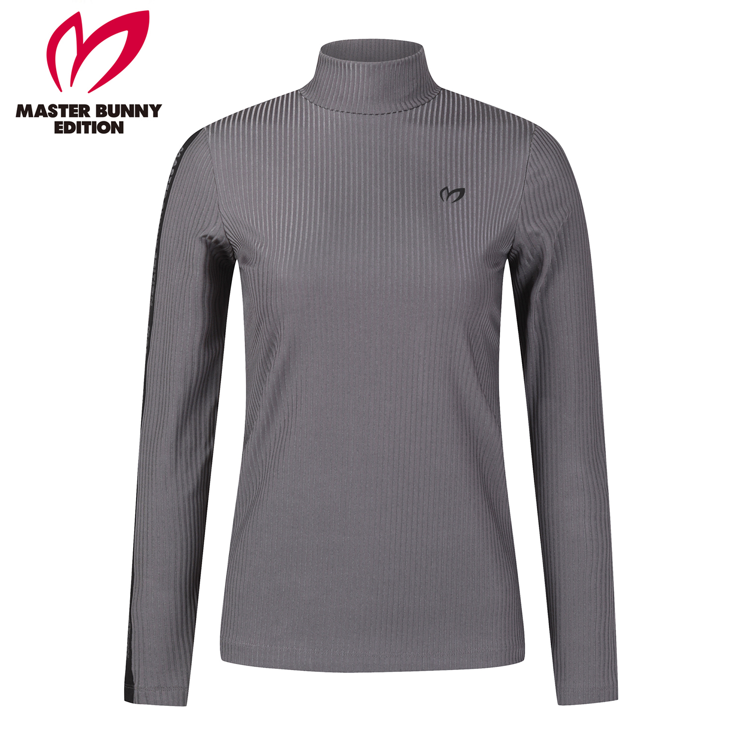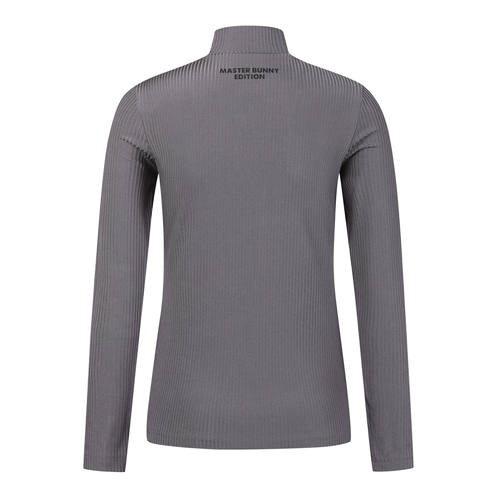 여성 모크넥 루버 로고 골지 티셔츠