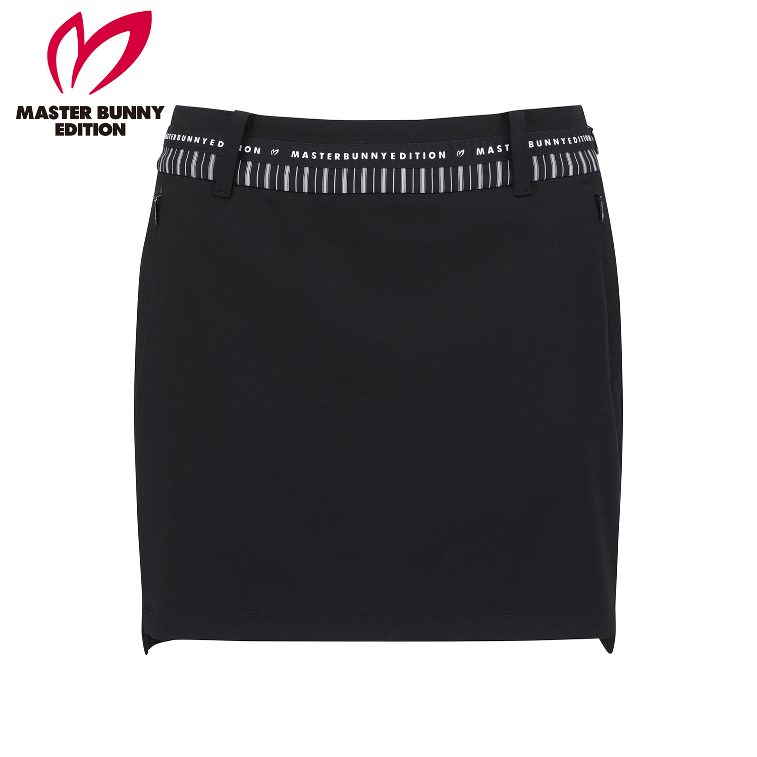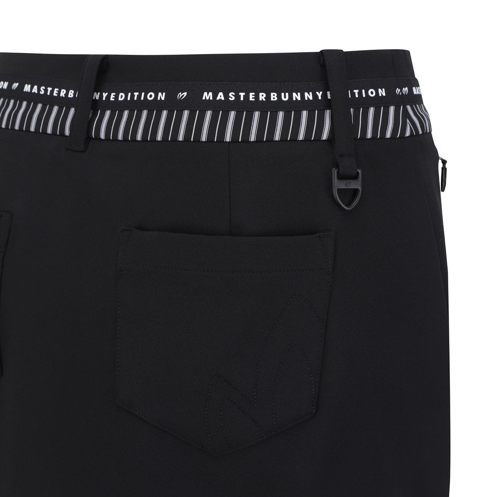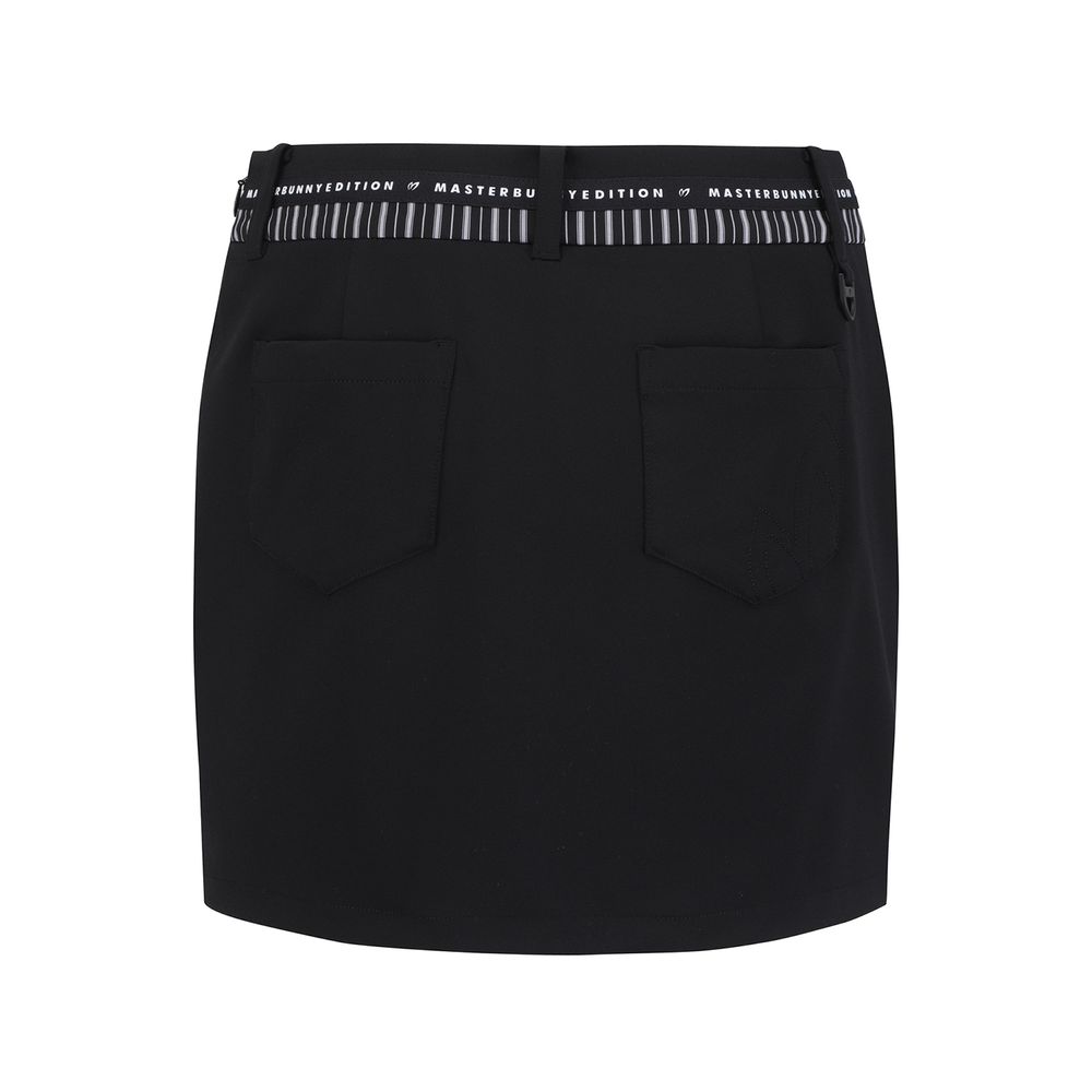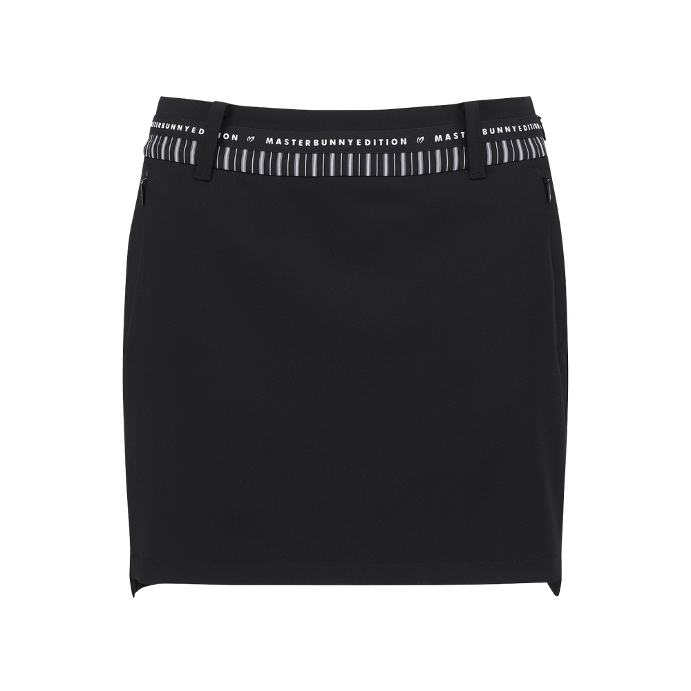 앞, 뒤 길이 편차가 있는 H라인 스커트, 와끼쪽에 트임이 있어 활동성 좋음.오비에 원단 배색, 로고 테이프 포인트를 준 전체적으로 깔끔한 디자인이며 표면에 발수 코팅이 되어 있어 생활오염 방지 가능.