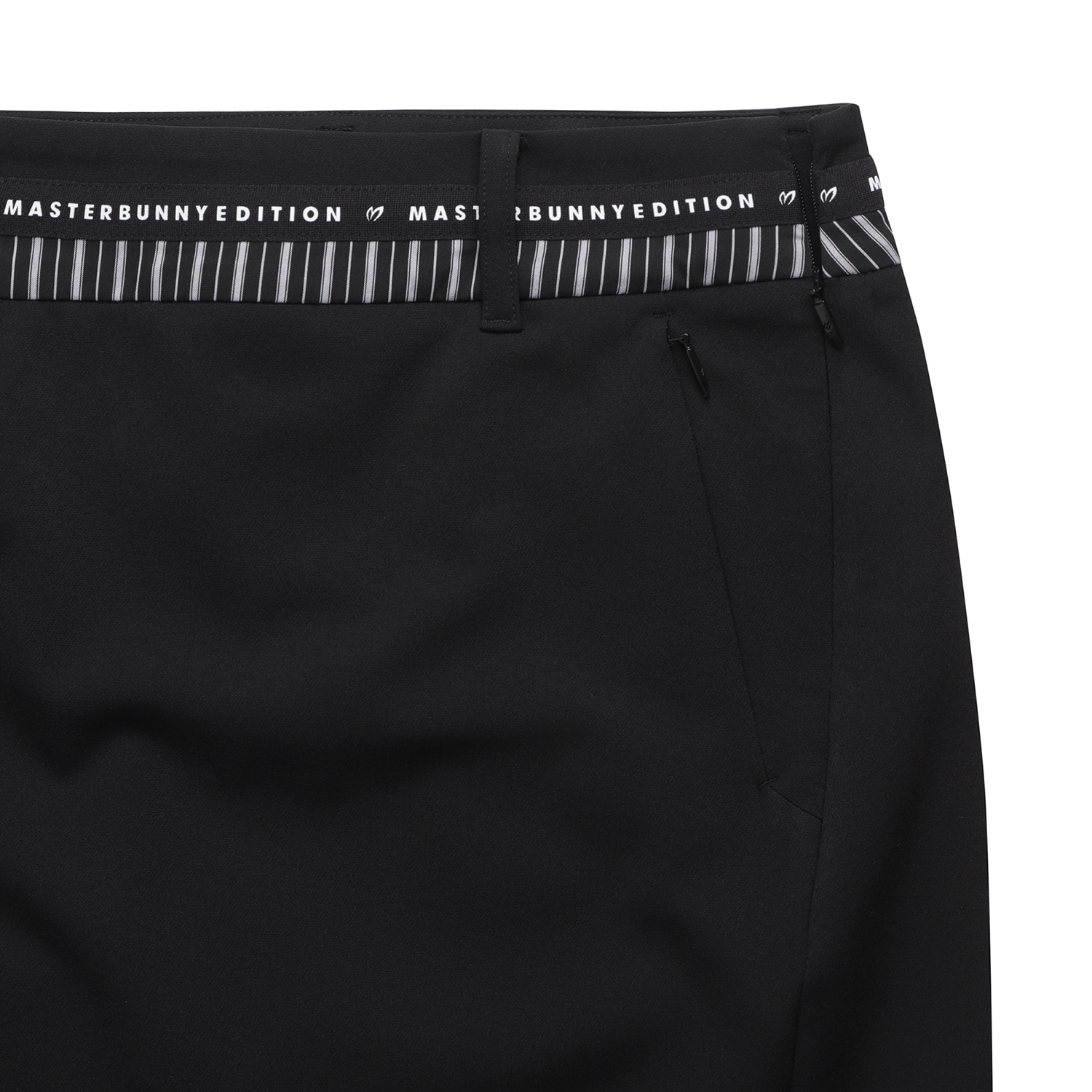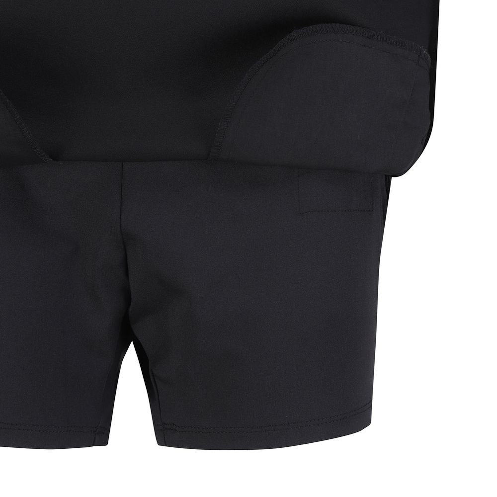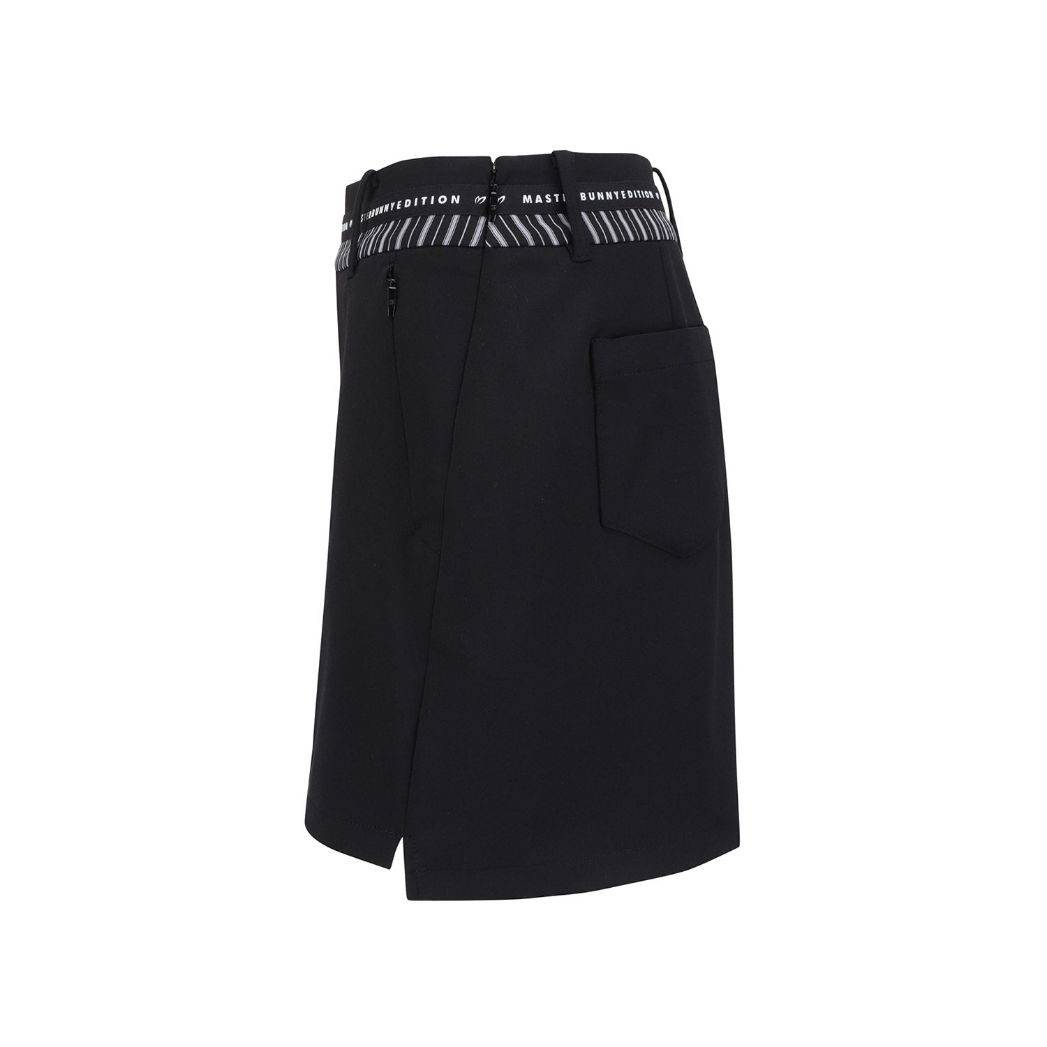 앞, 뒤 길이 편차가 있는 H라인 스커트, 와끼쪽에 트임이 있어 활동성 좋음.오비에 원단 배색, 로고 테이프 포인트를 준 전체적으로 깔끔한 디자인이며 표면에 발수 코팅이 되어 있어 생활오염 방지 가능.